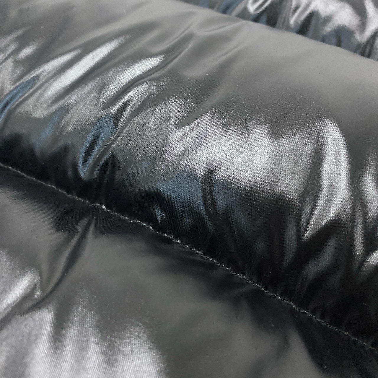 MONCLER(モンクレール)「E20914137505 DERVAUX」ダウンジャケット。艶のあるブラックナイロンをベースに、内側のイエローライニングがアクセントとなったデザイン。上質なグースダウンによるふっくらとしたボリュームと軽やかな着心地が魅力です。フロントのメタルジップやロゴワッペンが高級感を演出し、カジュアルからモードまで幅広く対応。冬の主役アウターとして存在感を放つ一着です。