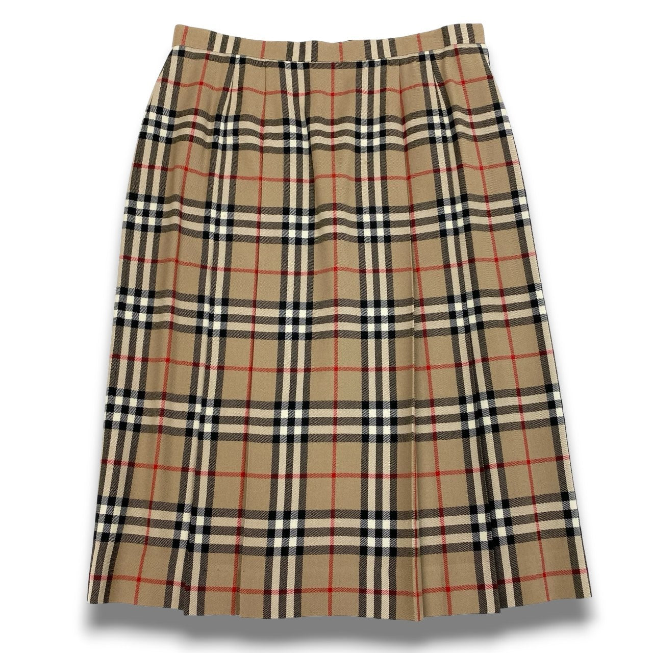 43b20 Vintage Burberrys バーバリーズ ヴィンテージ ノバチェック フレアスカート タックプリーツ 13 ベージュ系 ウール レディースu02t