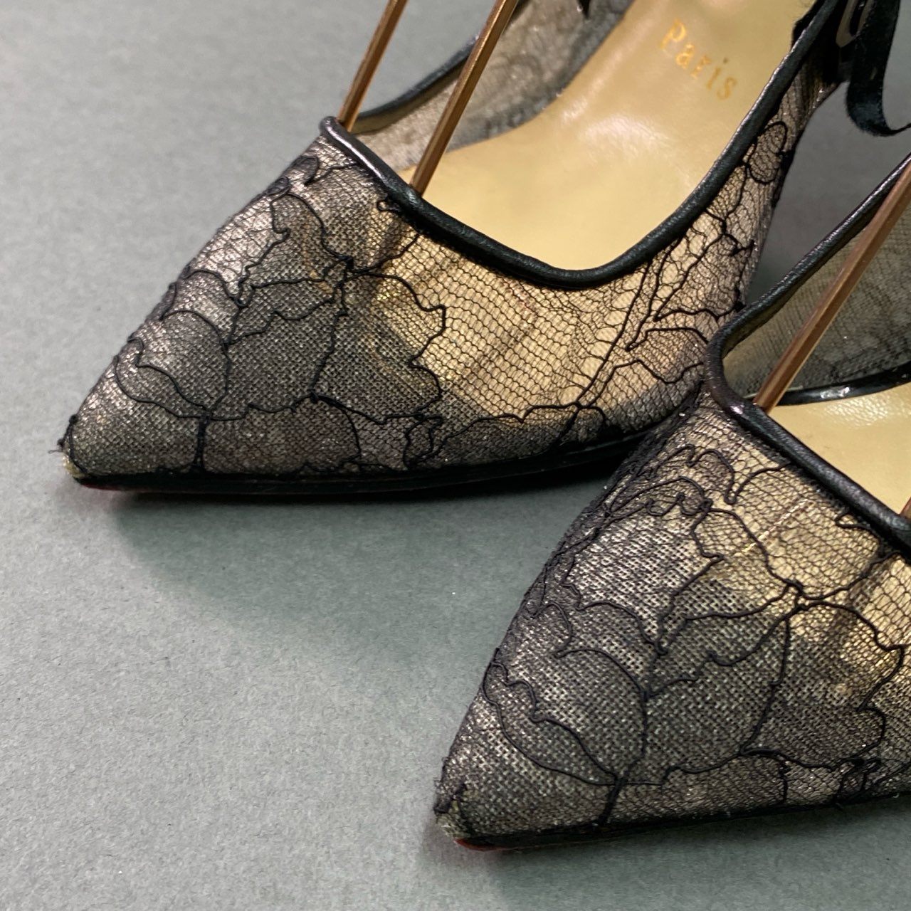 5g8《美品》 Christian Louboutin クリスチャンルブタン HOT JEANBI 100 フラワーレースパンプス 36 1/2 ブラック シューズ 箱付き