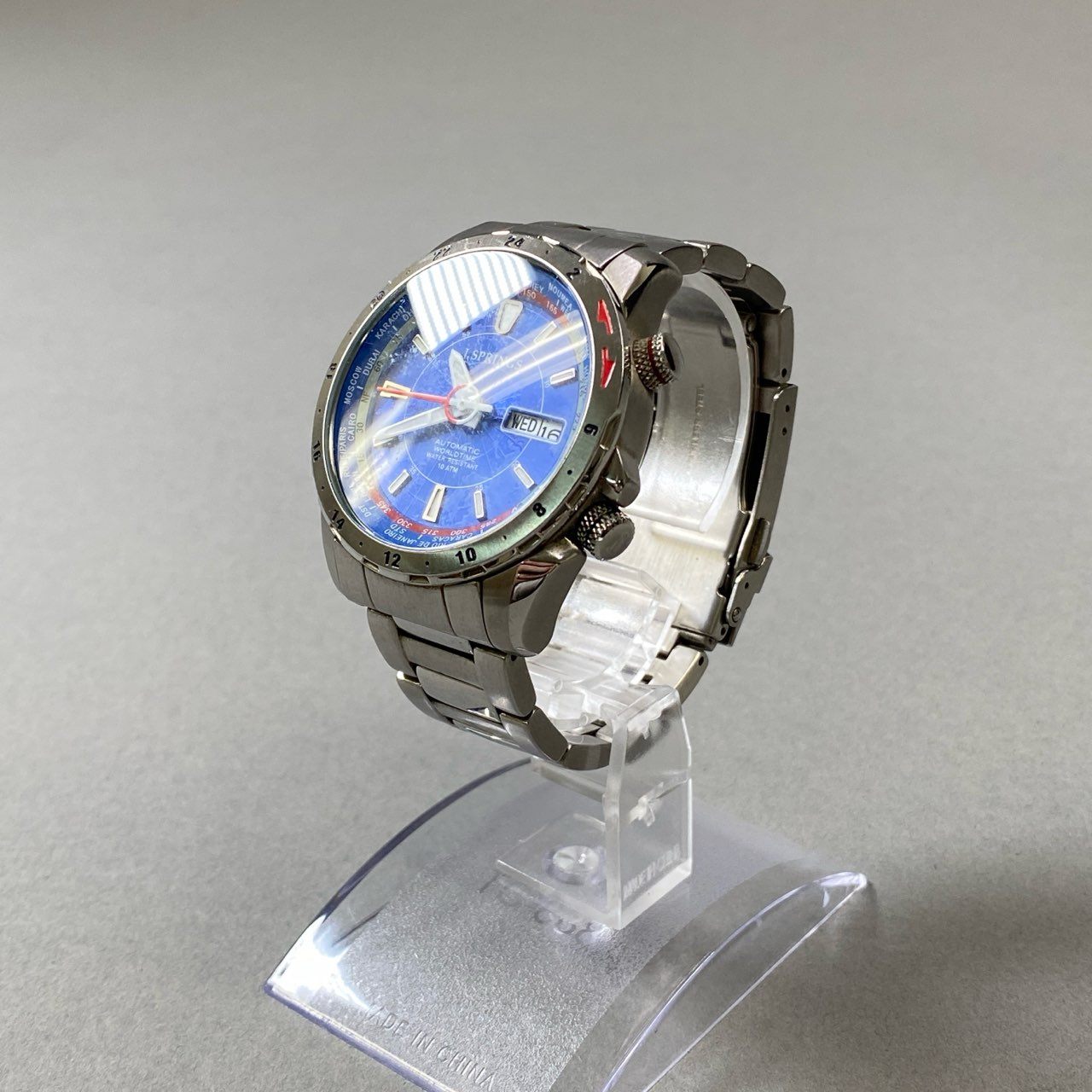 J.SPRINGS Ref:BE8011、自動巻きのメンズ腕時計です。鮮やかなロイヤルブルーの文字盤にワールドタイム表示を配し、24時間ベゼルと赤い秒針がスポーティーなアクセントを演出。シルバーステンレスのケースとブレスレットが精悍さを引き立て、オンオフ問わず使える万能な一本です。40mmケースでリスト内径15cmにもしっかりフィットし、使いやすいバランス感を実現しています。曜日・日付表示付きで機能性も高く、日常から旅行シーンまで活躍します。