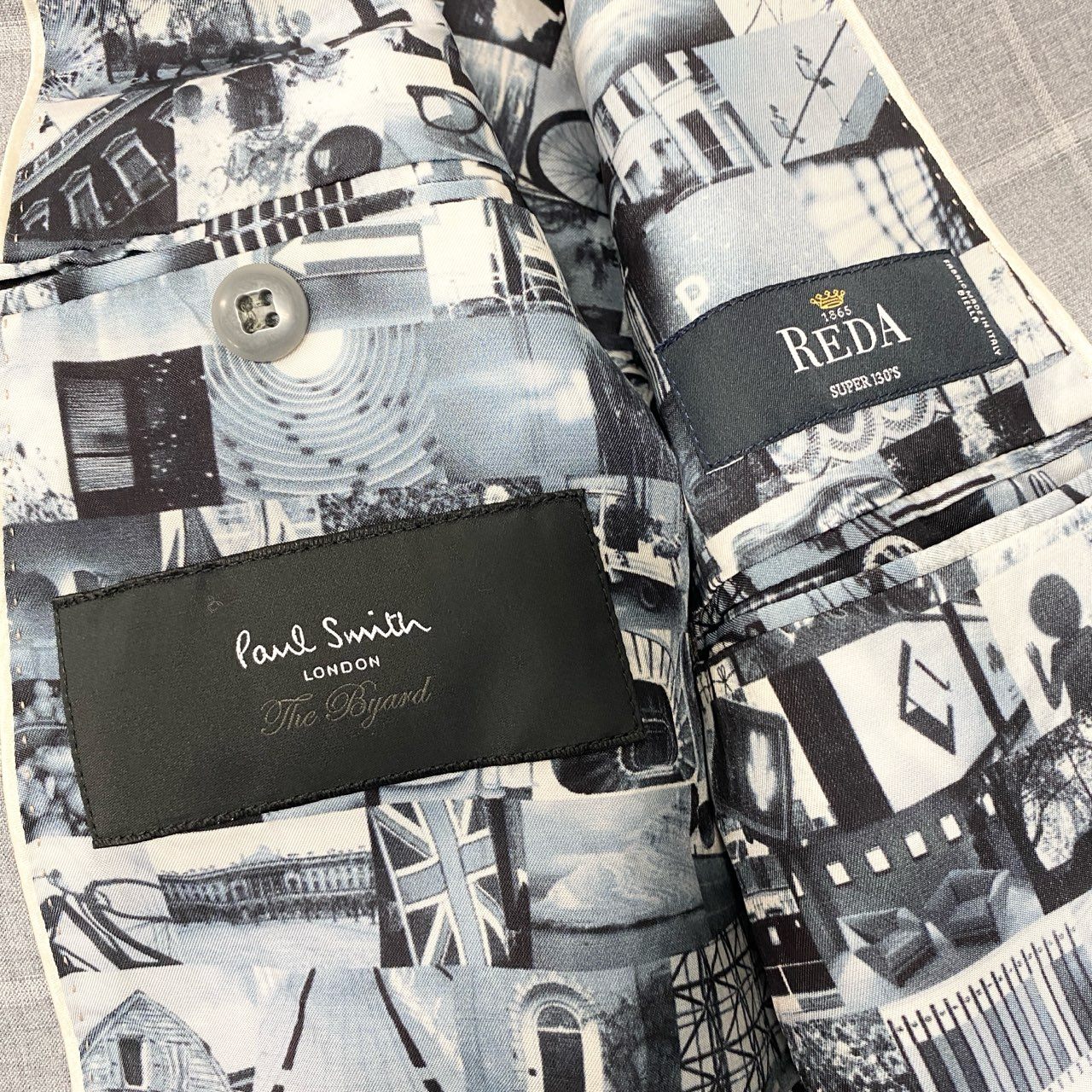 13c5 Paul Smith ポールスミス The Byard ライン シングルスーツ セットアップ レダ生地 M グレー チェック ウール メンズu02t