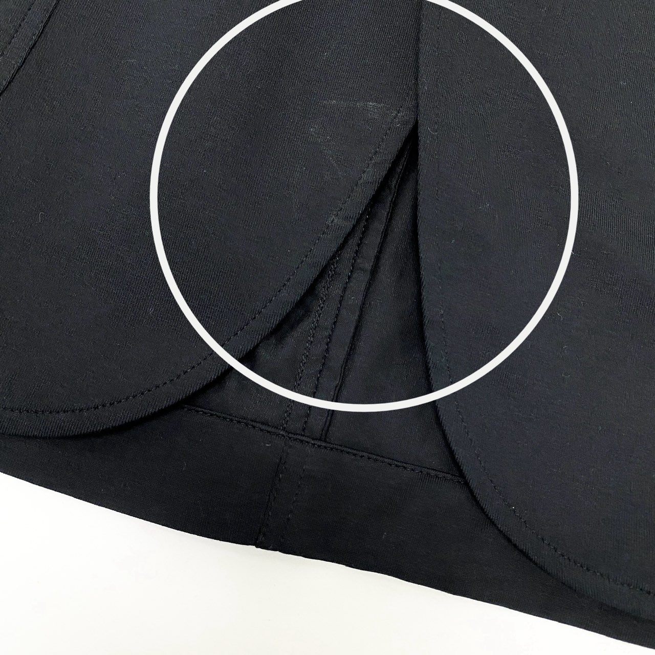 ヒップが隠れる丈感で、やや長めのシルエット。