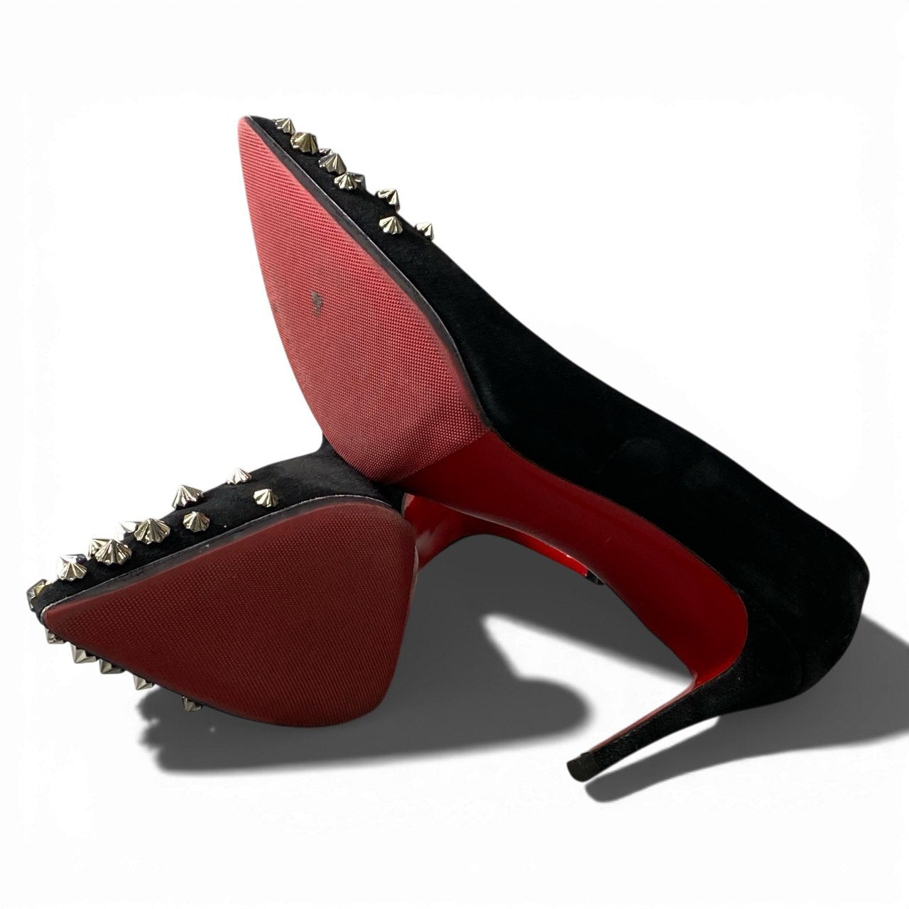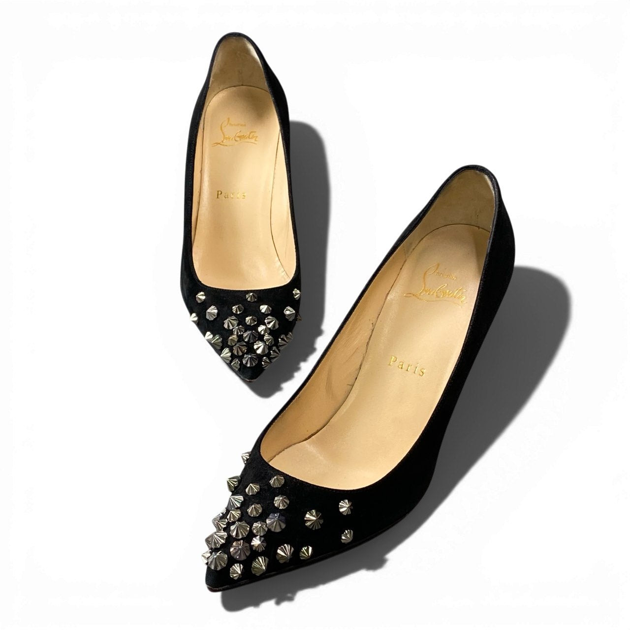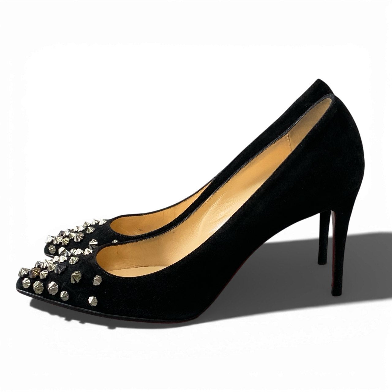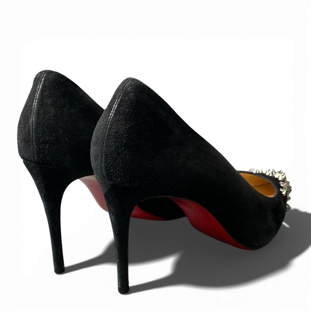 3a5 christianloboutin クリスチャンルブタン スタッズ ハイヒール パンプス スウェード ピンヒール イタリア製 36 1/2サイズ ブラック レディースk02i