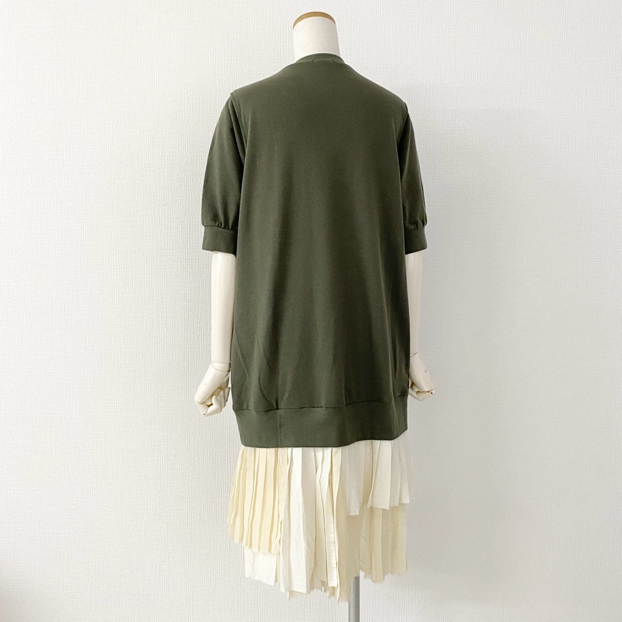16l2 《美品》 日本製 Sue UNDERCOVER スーアンダーカバー 五分袖ワンピース 1 カーキ ドッキングワンピース 切替ワンピース Vネックワンピース コットン