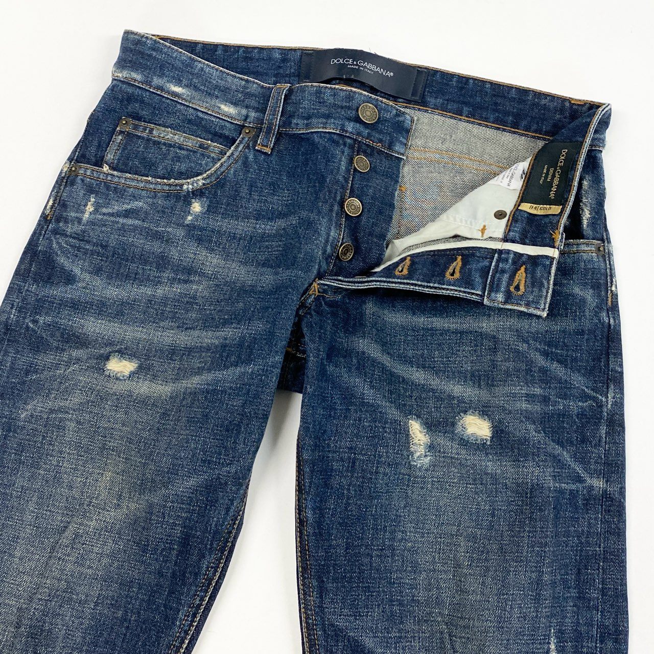 85L19 DOLCE&GABBANA DENIM ドルチェアンドガッパーナ 14GOLD デニムパンツ ダメージデニム ジーンズ イタリア製 メンズ 紳士服 G6IALD 44 インディゴブルー コットン100%k02i