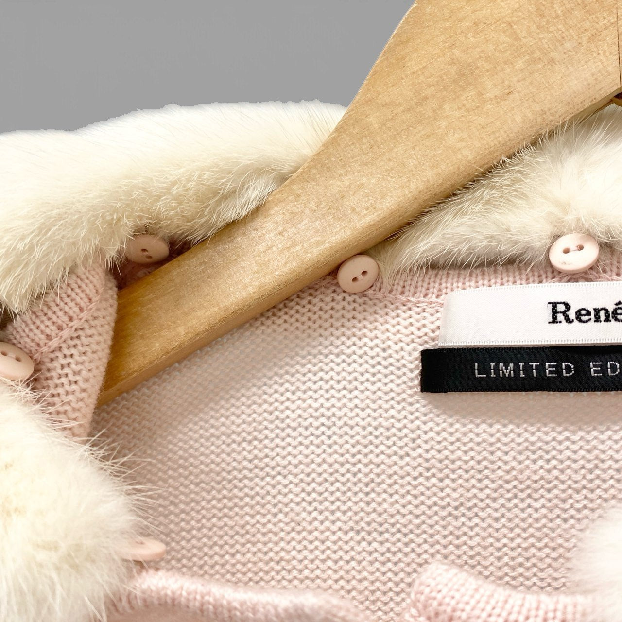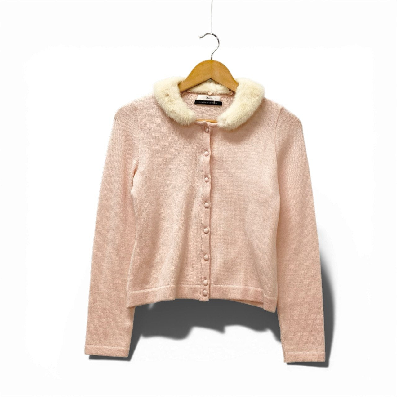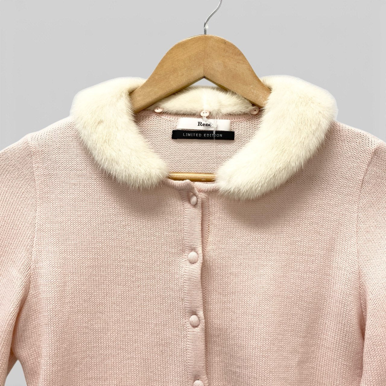 14b13 Rene ルネ ニットカーディガン ニットセーター 襟ミンクファー取り外し可 6642770 36サイズ ベビーピンク ウール100% レディース 女性用u02t