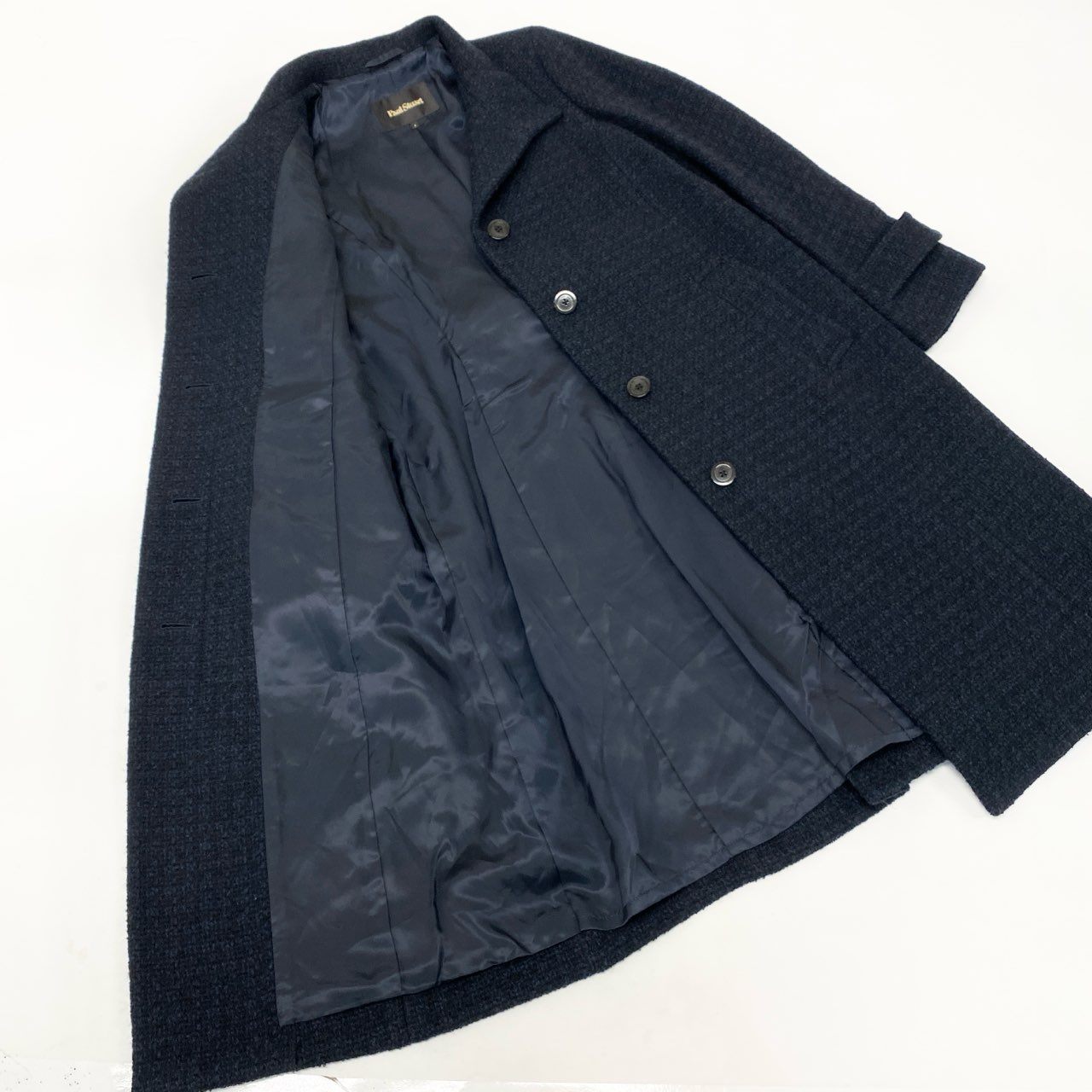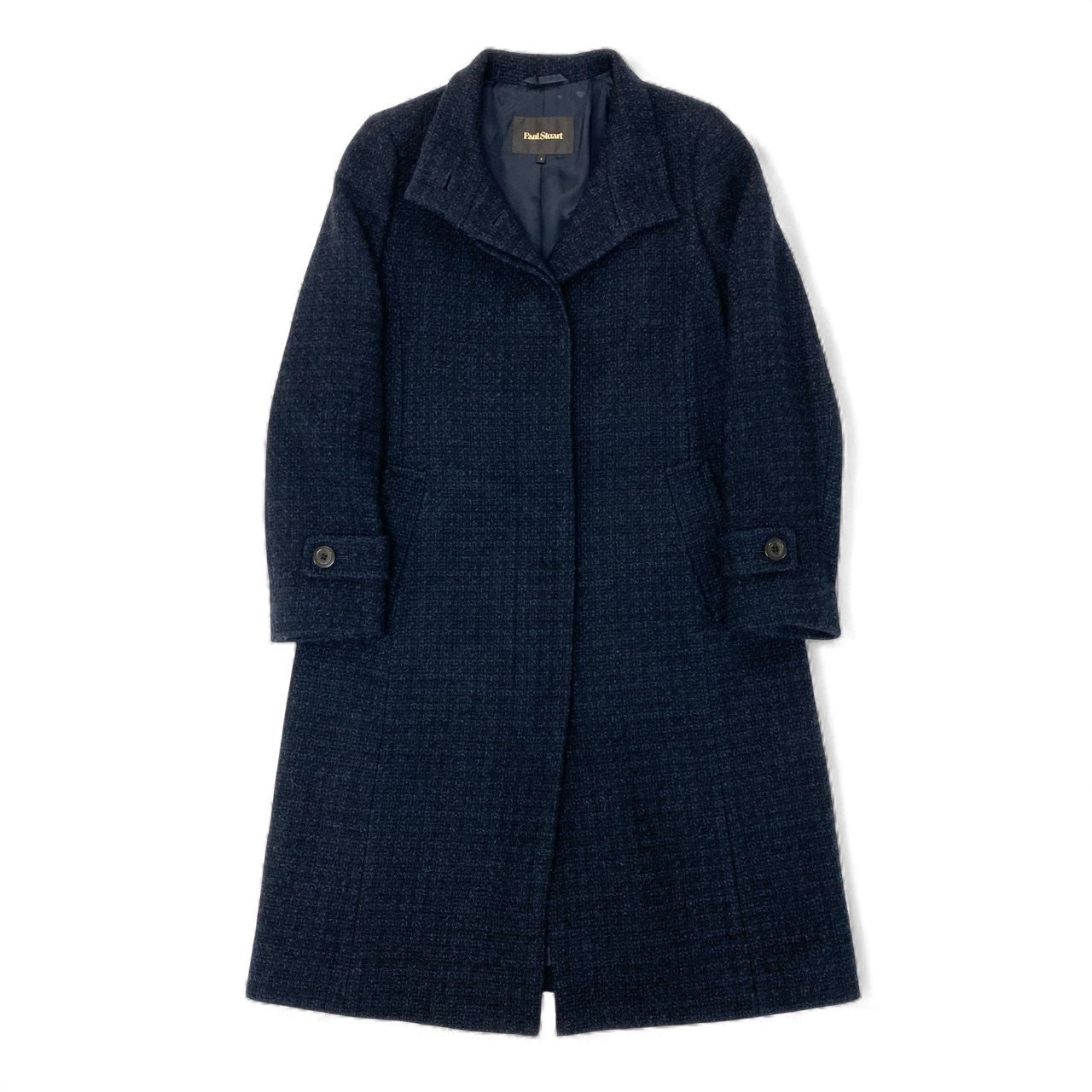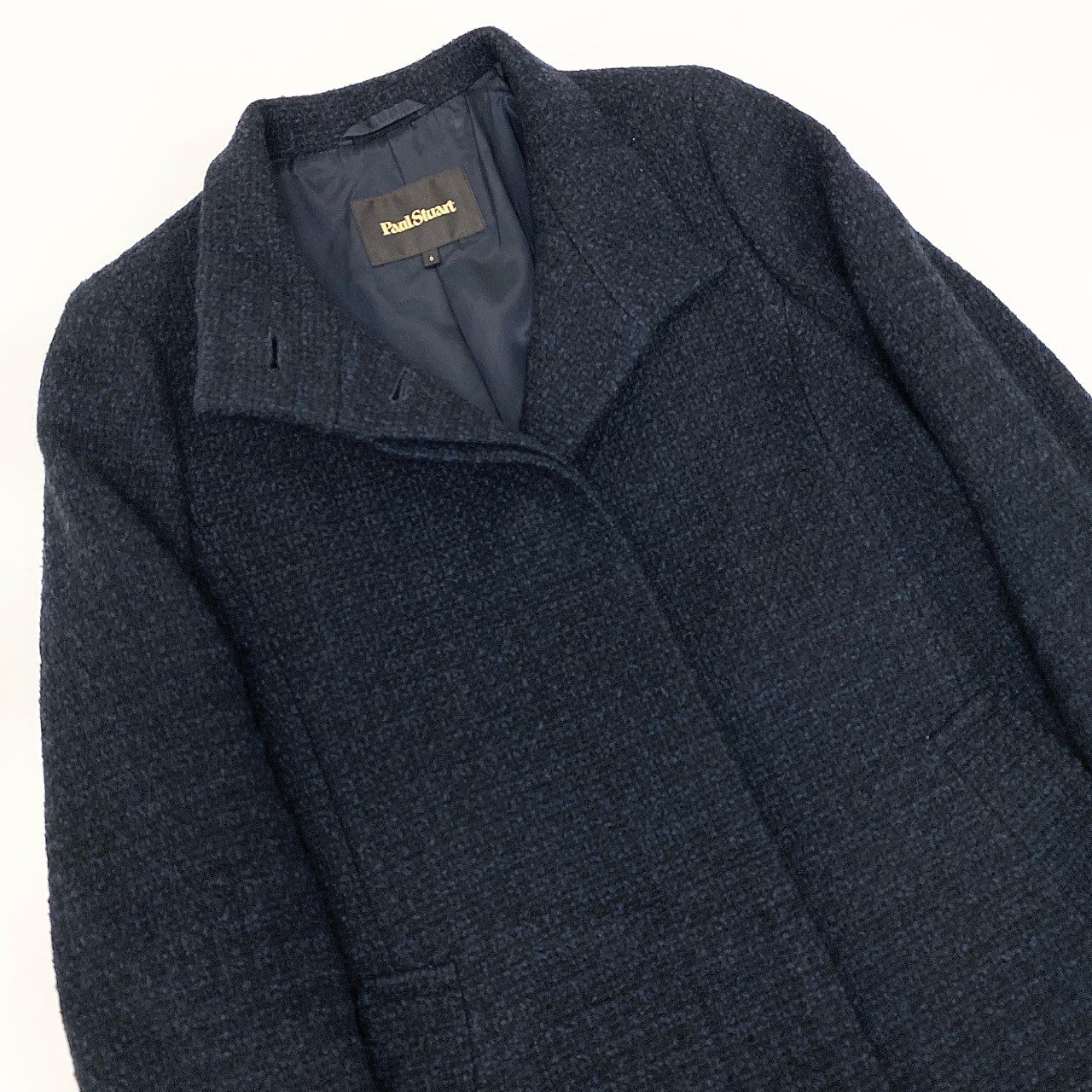 36k28 Paul Stuart ポールスチュアート スタンドカラーコート ツイードコート ロング ウールブレンド レディース 女性用 6 ネイビー ブラックu02t