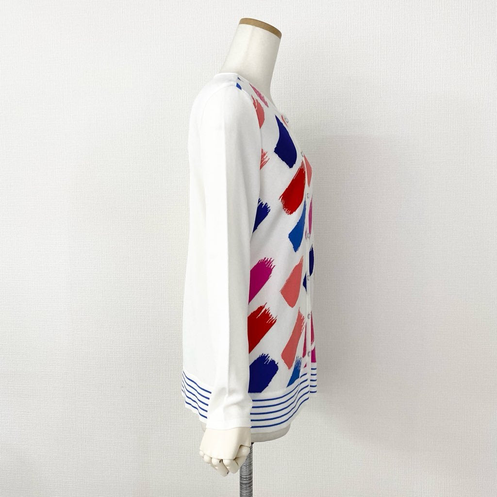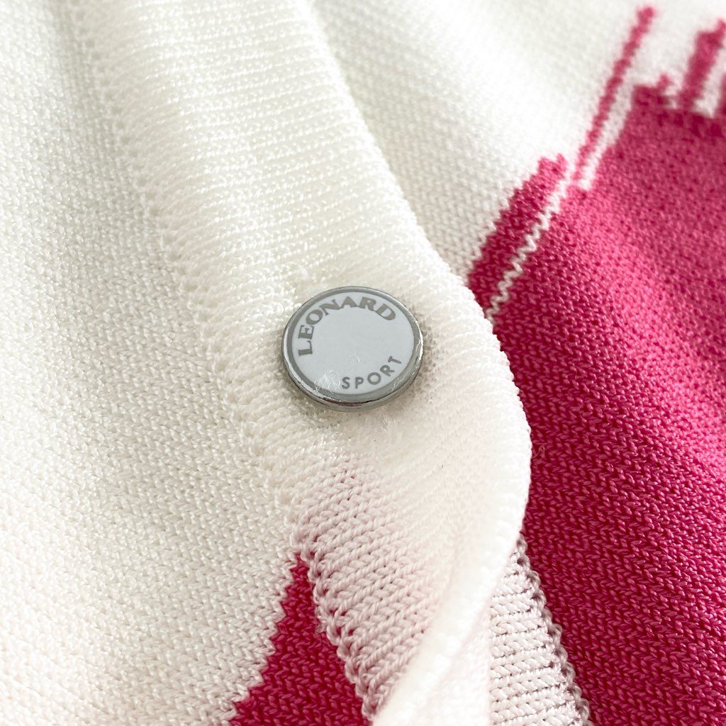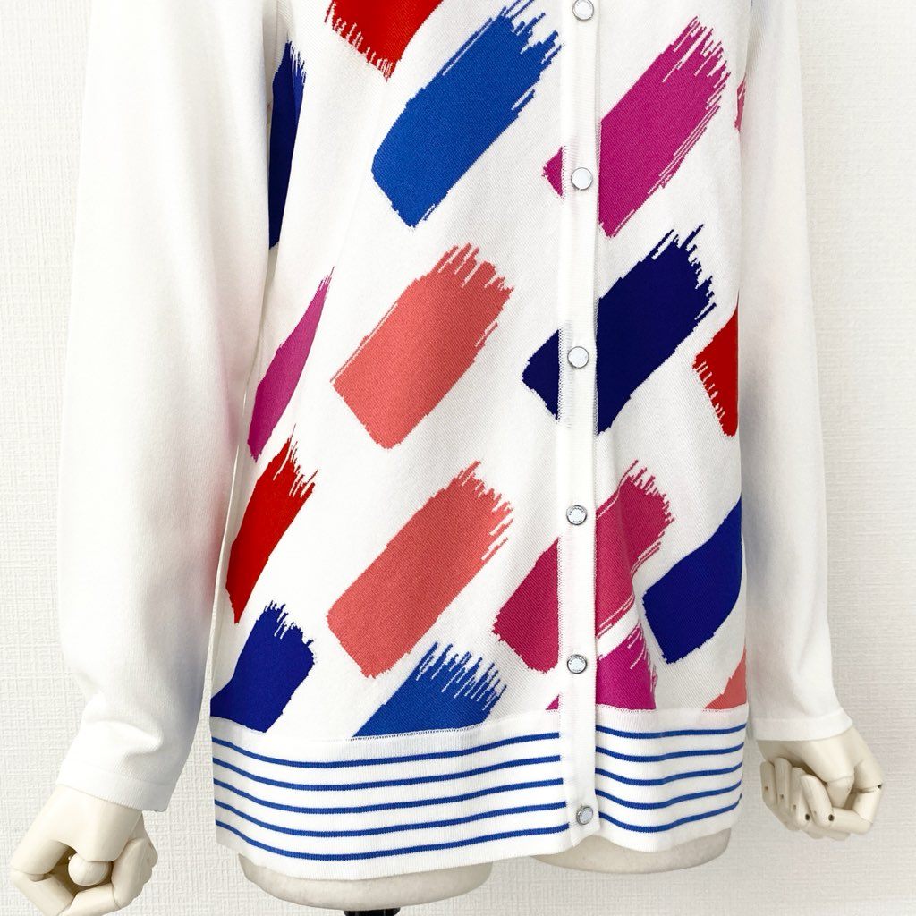 27f20 《美品》 LEONARD SPORT レオナール ニットカーディガン ボレロ 伸縮素材 0557231 サイズ40 ホワイト マルチカラー レディース 日本製