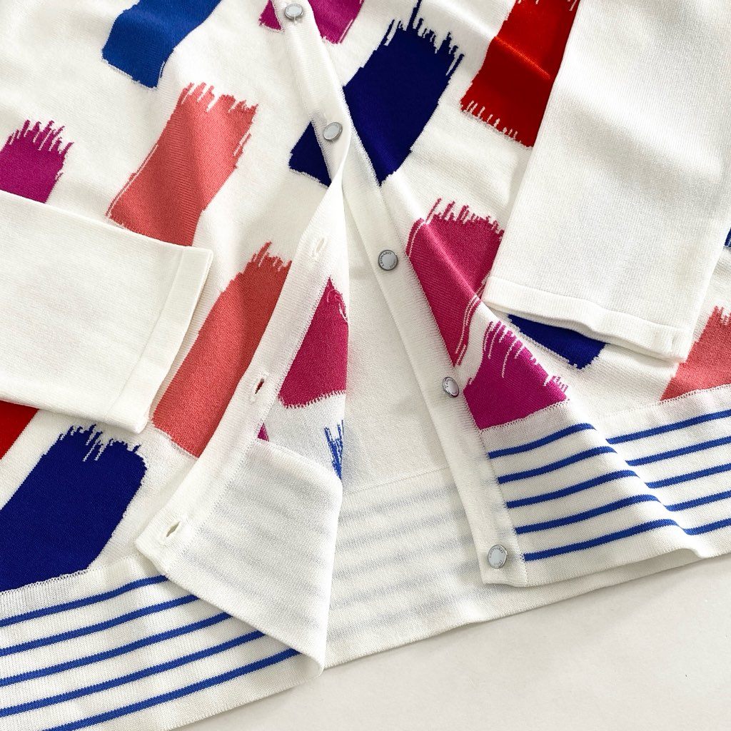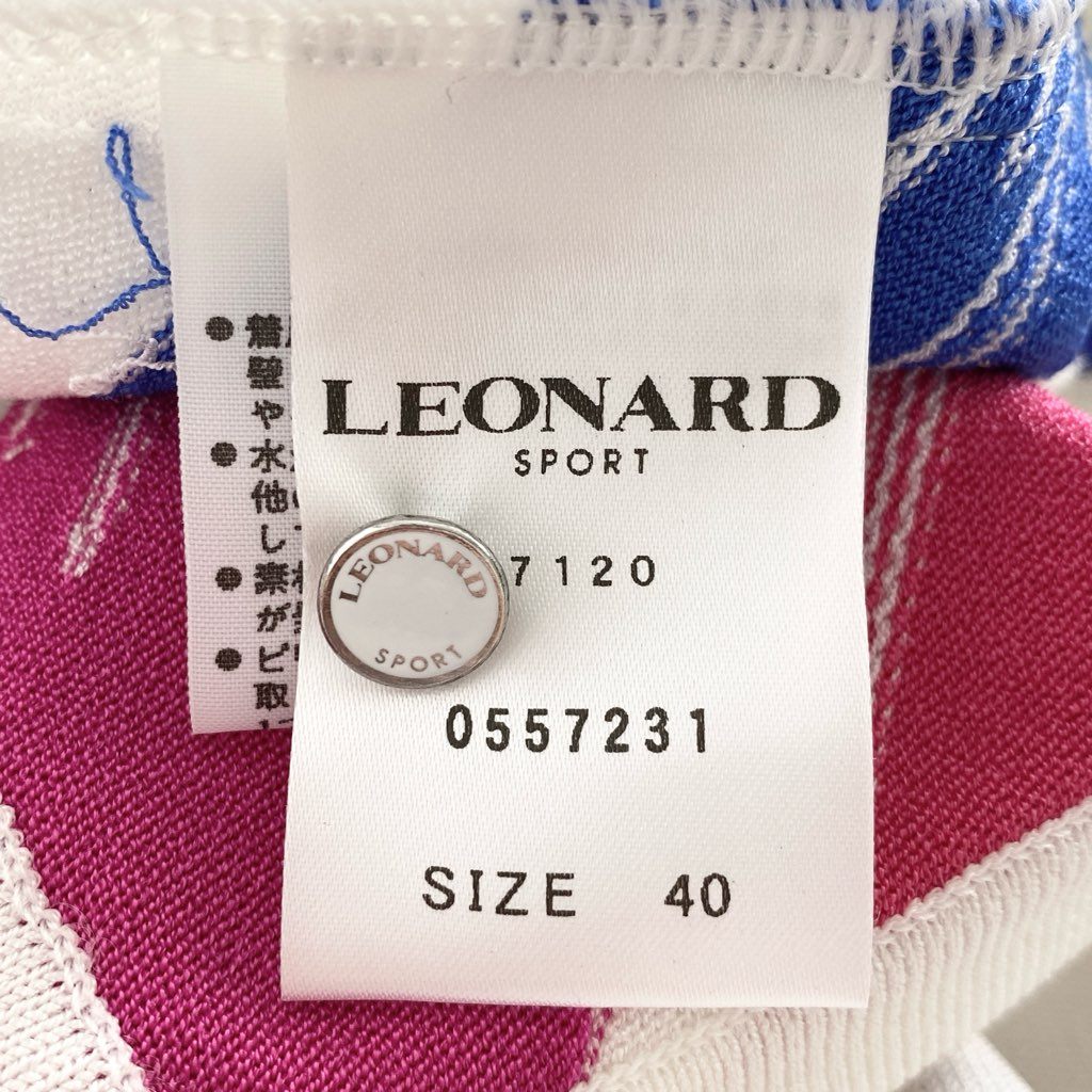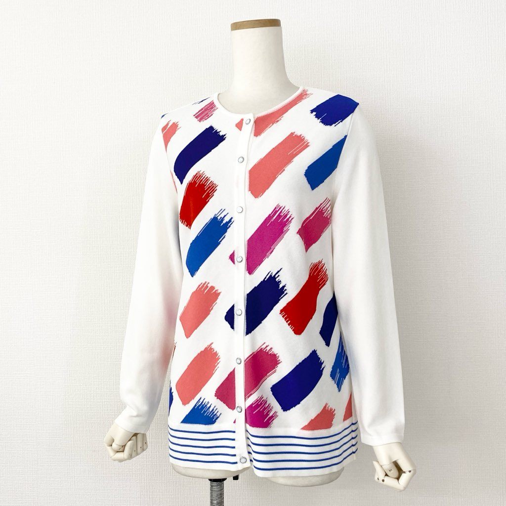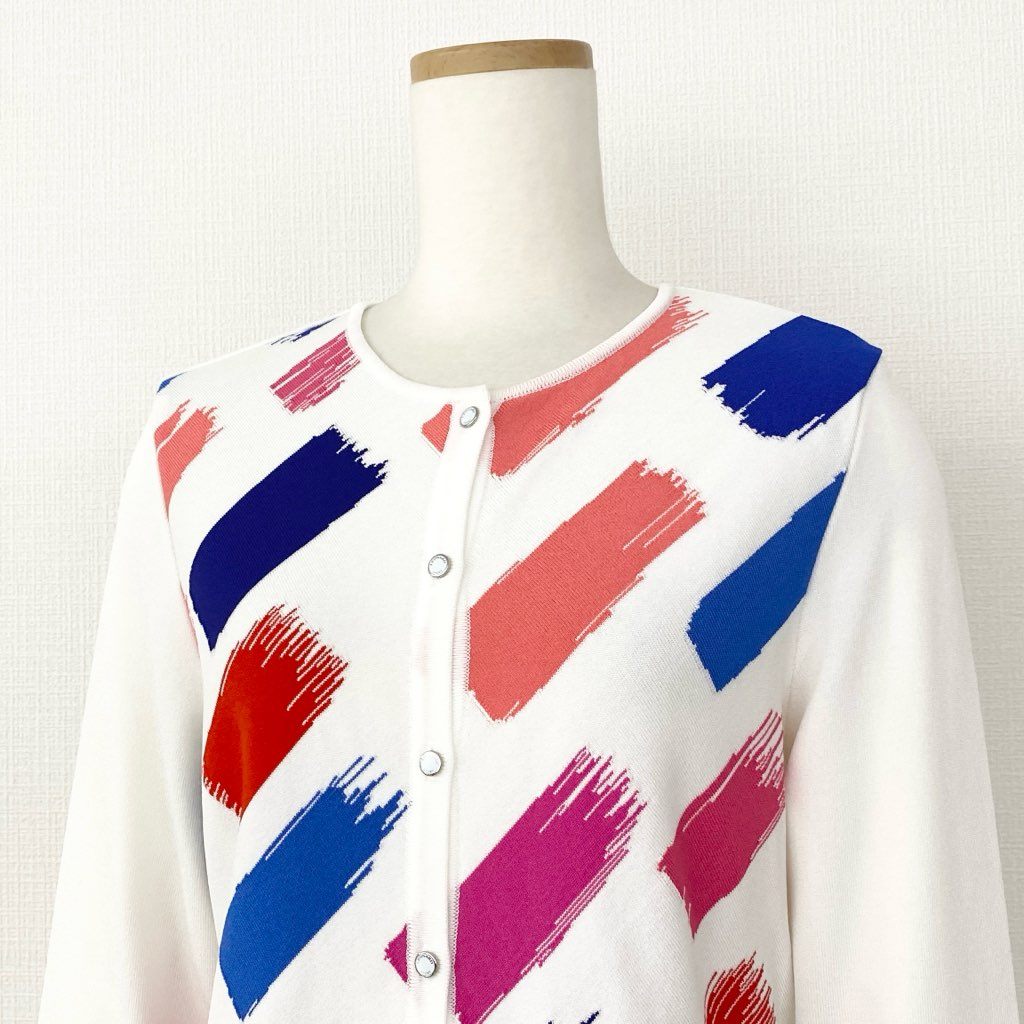 27f20 《美品》 LEONARD SPORT レオナール ニットカーディガン ボレロ 伸縮素材 0557231 サイズ40 ホワイト マルチカラー レディース 日本製