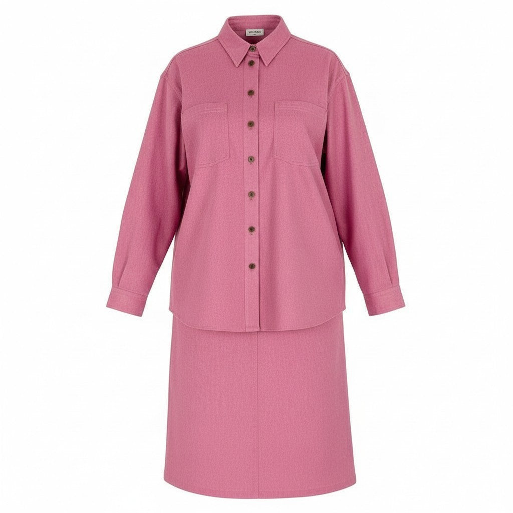 CHANEL1999年クルーズコレクションの希少なセットアップで、柔らかなピンクカラーが印象的な一着です。無地のデニム素材はマットで程よいハリがあり、カジュアルさの中にもシャネルらしい品の良さを感じさせます。フロントのココマーク入りボタンや大きめポケットがデザインアクセントとして際立ちます。セットアップとしてはもちろん、単品使いでデイリーからリゾートシーンまで幅広く活躍するアイテムです。