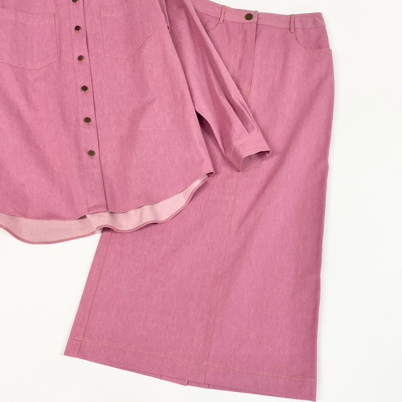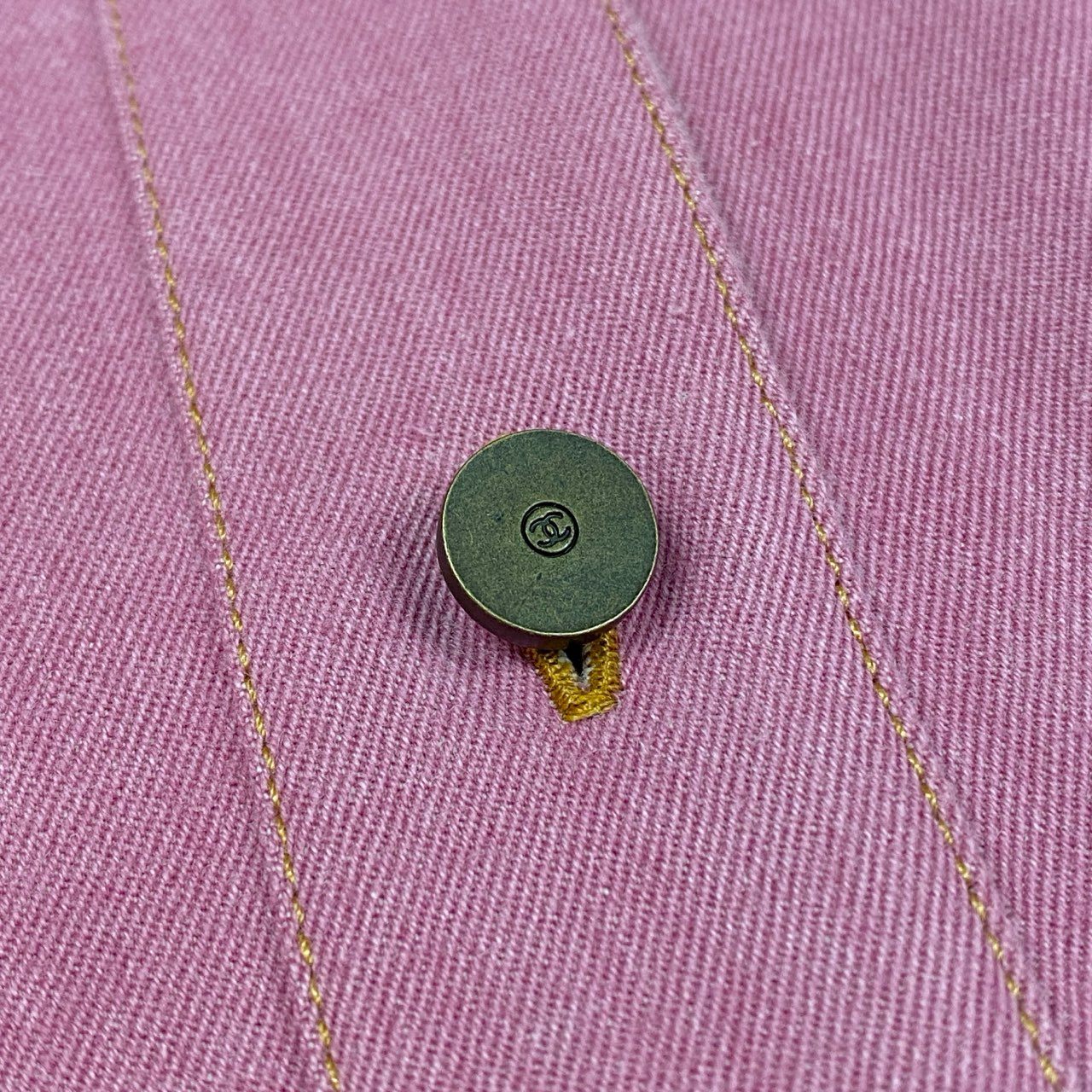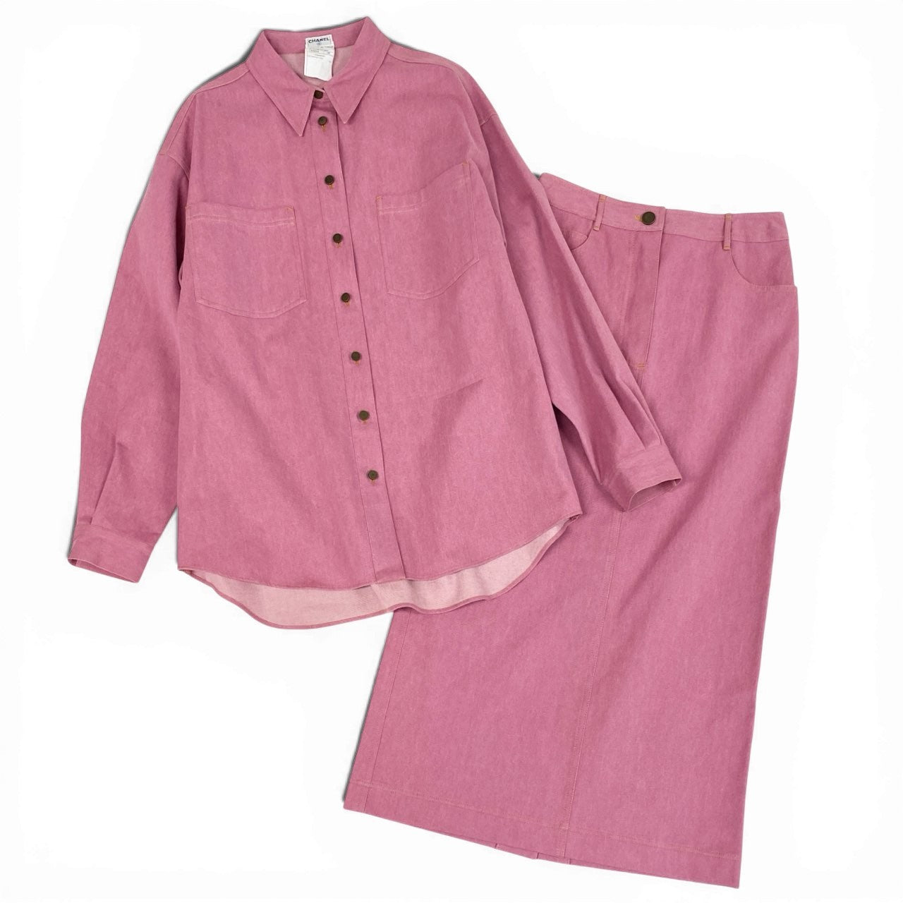 Ca15 【archive】CHANEL ヴィンテージ シャネル 1999年 Cruise ランウェイ ココマークボタン デニムシャツ デニムスカート セットアップ オーバーサイズ サイズ38 ピンク レディースta1
