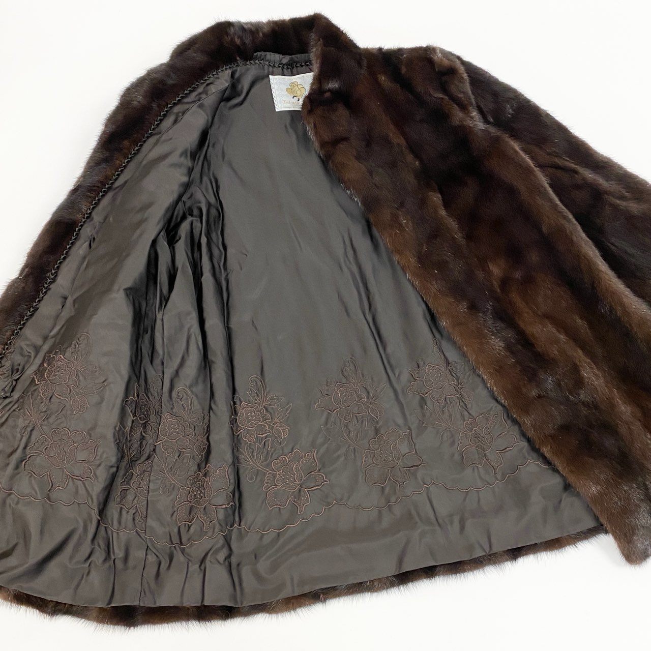 26j24 TAKASHIMAYA タカシマヤ 最高級毛皮 デミバフミンク ミンクコート 毛皮コート セミロングコート サイズ13-15 ブラウン ミンクファー レディース 裏地花柄刺繍u02t