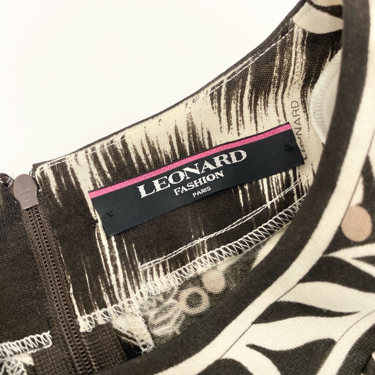 10i16 LEONARD レオナール 長袖カットソー クルーネック モノトーン アニマル柄 シルク混紡 レディース 女性用 M ブラウン アイボリーu02t