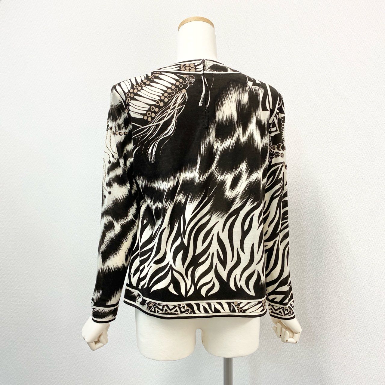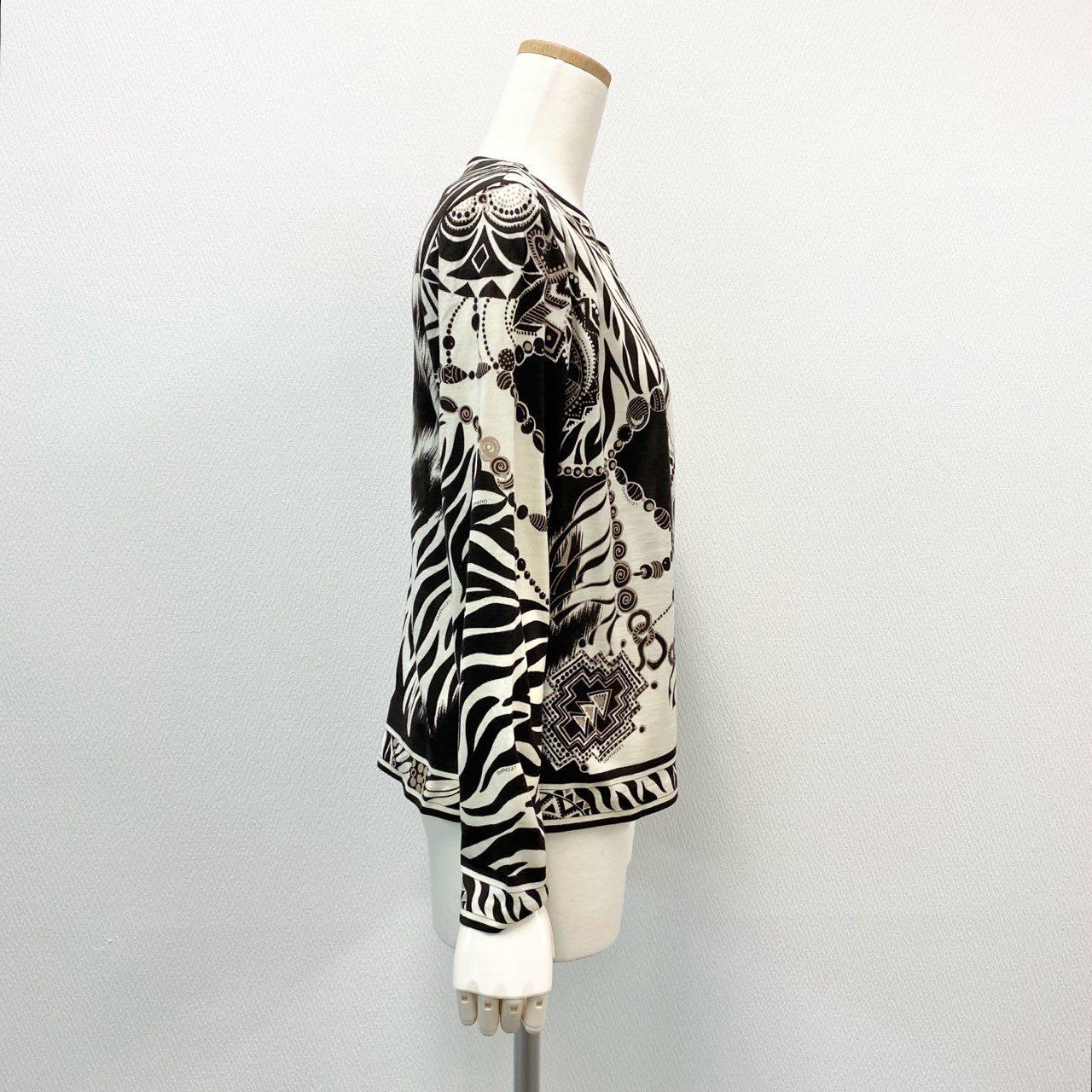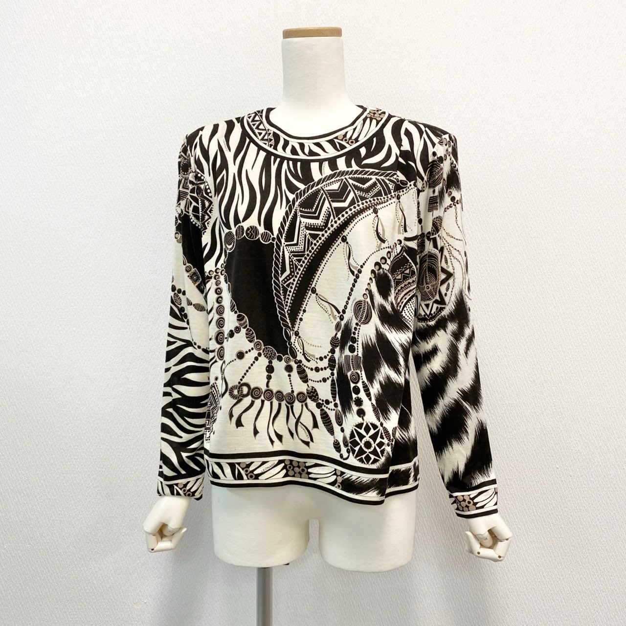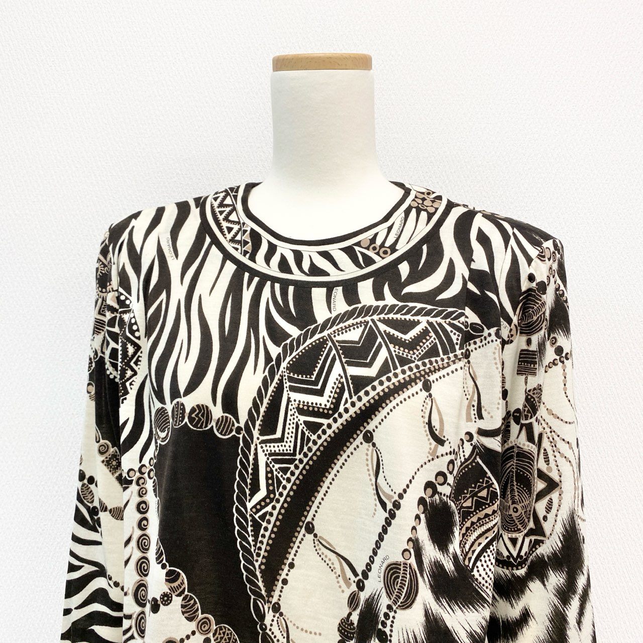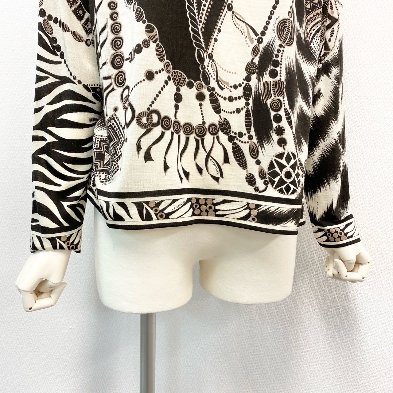 レオナールの長袖カットソー、モノトーンを基調とした大胆なアニマル柄デザインが印象的な一着です。
