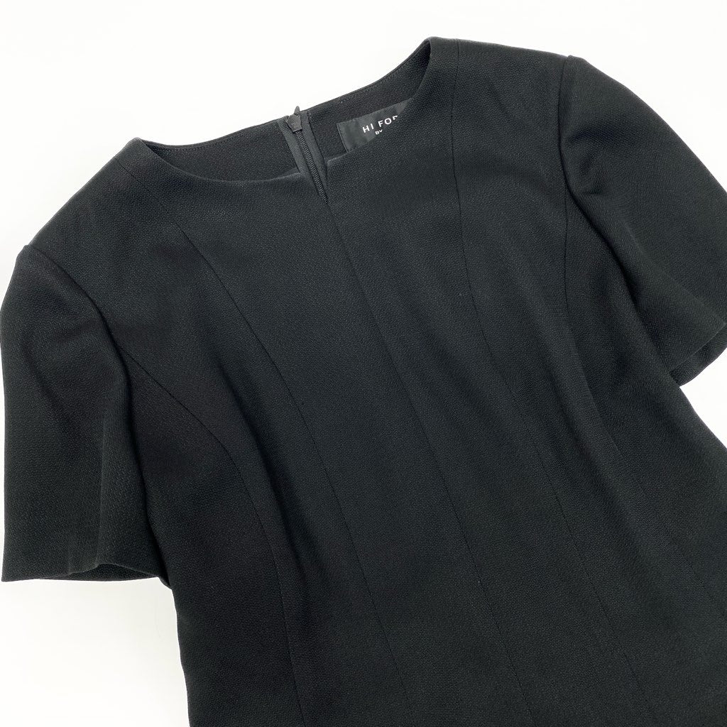 ブラックの単色が際立つ、マットでしなやかな質感のフォーマルセットアップです。ジャケットはフロントボタンと襟付きデザイン、縦ラインの切替がすっきりした印象を与えます。スカートは落ち着いたひざ下丈で、上品かつ汎用性の高いシルエット。ジバンシー 東京ソワールの3点セット仕様で、法事・式典・改まった席まで幅広く対応できる一着です。