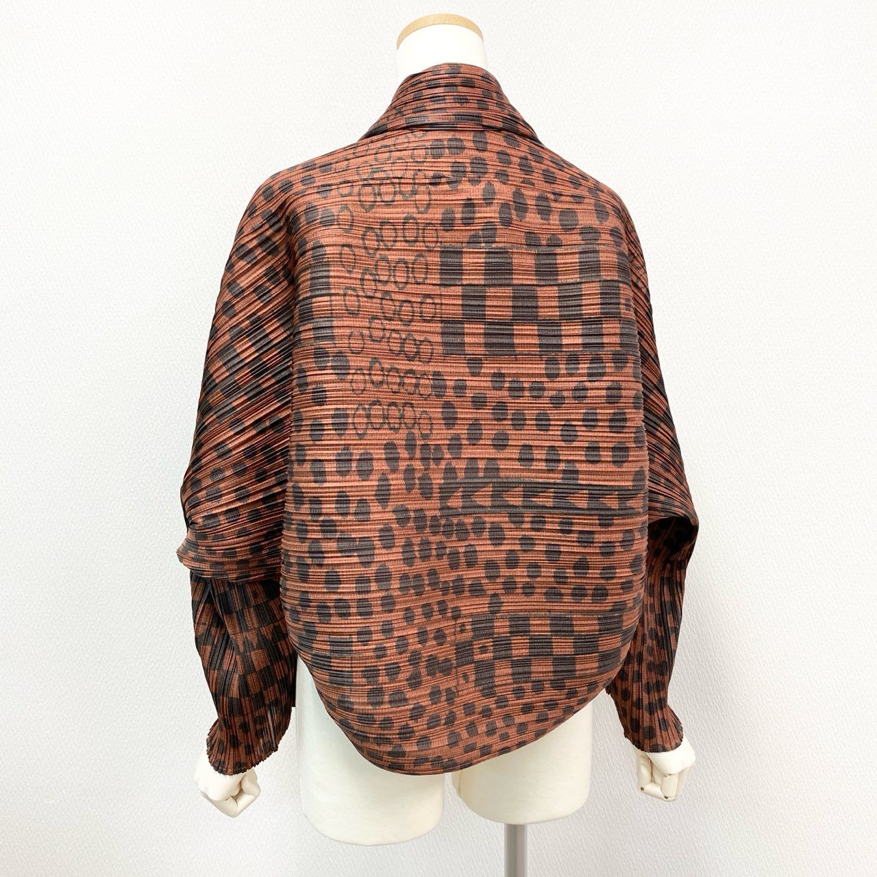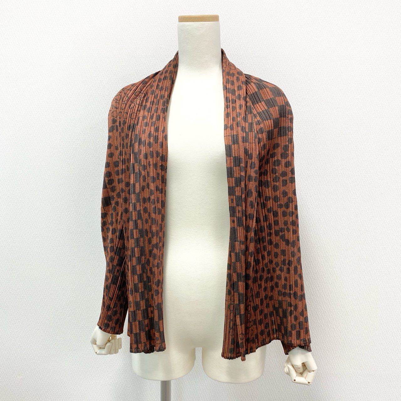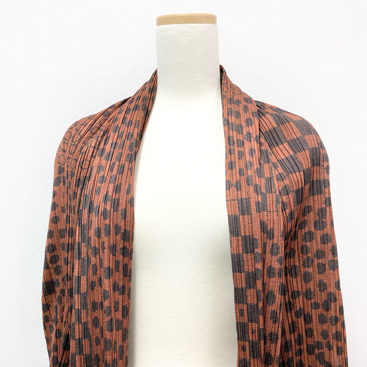 Ai18《極美品》PLEATS PLEASE プリーズプリーツ 変形カーディガン ジャケット 羽織 総柄 3サイズ ブラウン グレー レディース 女性用u02t