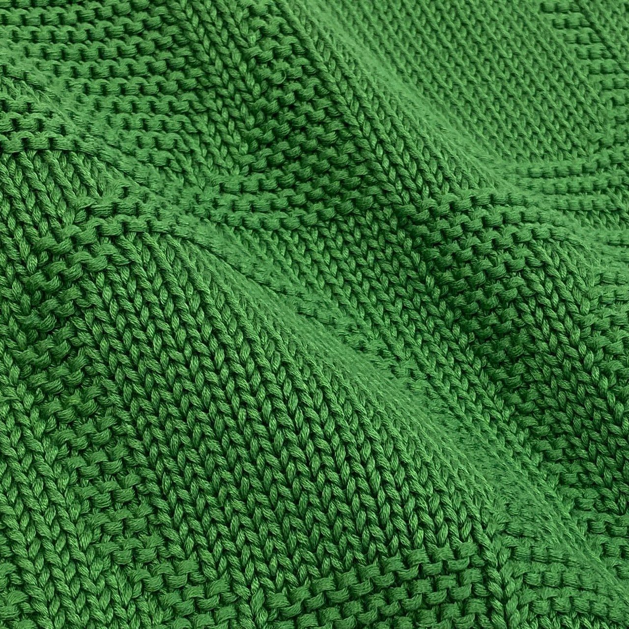 鮮やかなグリーン系カラーが目を引くニットアンサンブルです。 全体にガンチーニ柄の凹凸編みが施され、立体感のある表情に仕上がっています。 素材はマットで程よい厚みのあるニットで、シーズンムードを高める一着。 アンサンブルとしてはもちろん、単品使いでも存在感があり、上品なカジュアルからきれいめスタイルまで活躍します。
