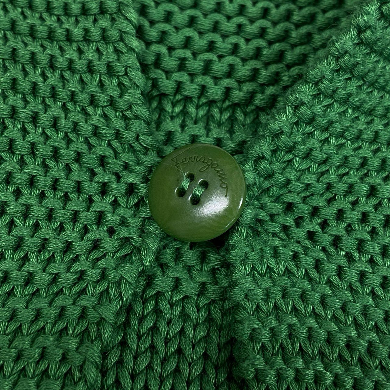 Ab13【美品】Salvatore Ferragamo サルバトーレフェラガモ ヴィンテージ ガンチーニ ニットアンサンブル Vintage Gancini Knit 2-Piece Set Mサイズ グリーン コットン100% レディース 女性用ta1