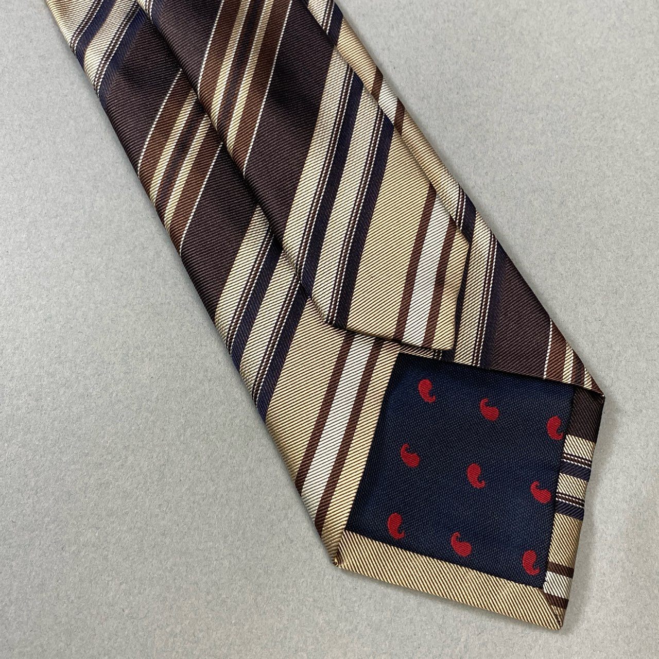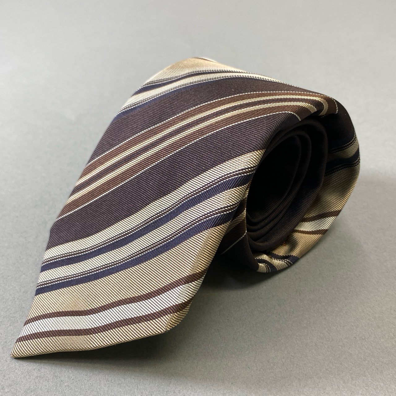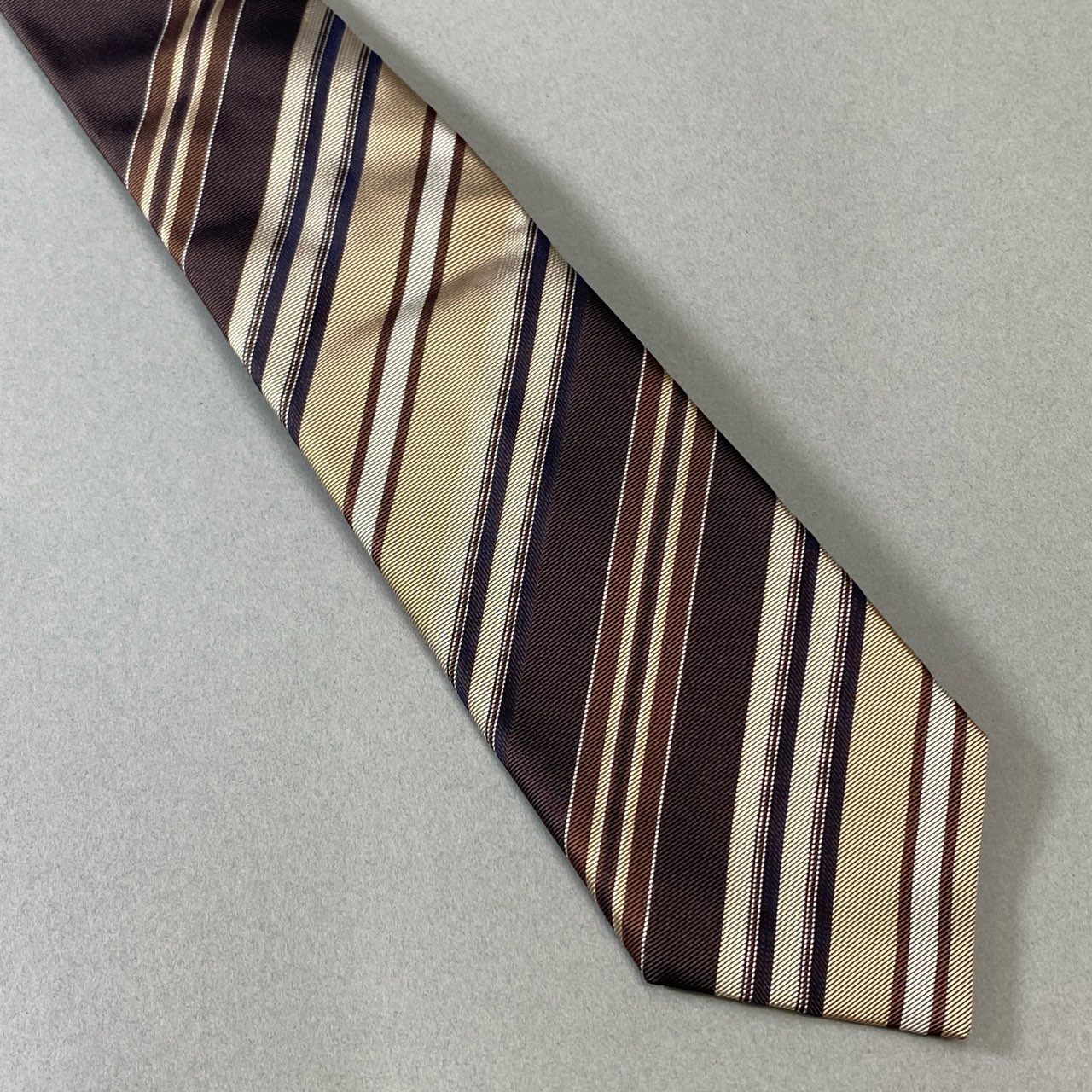 FRANCO BASSI for BEAMS F(フランコバッシ フォー ビームスエフ)のジャガードタイ。ブラウン・ベージュ・ネイビーのマルチストライプが織りで表現された、クラシックかつ上品な1本です。光沢を抑えたジャガードシルク素材が、落ち着いた艶と高級感を演出。トラッドなスーツスタイルはもちろん、ベージュ系やネイビージャケットとも好相性。ビームスエフらしい洗練されたビジネスアクセサリーです。