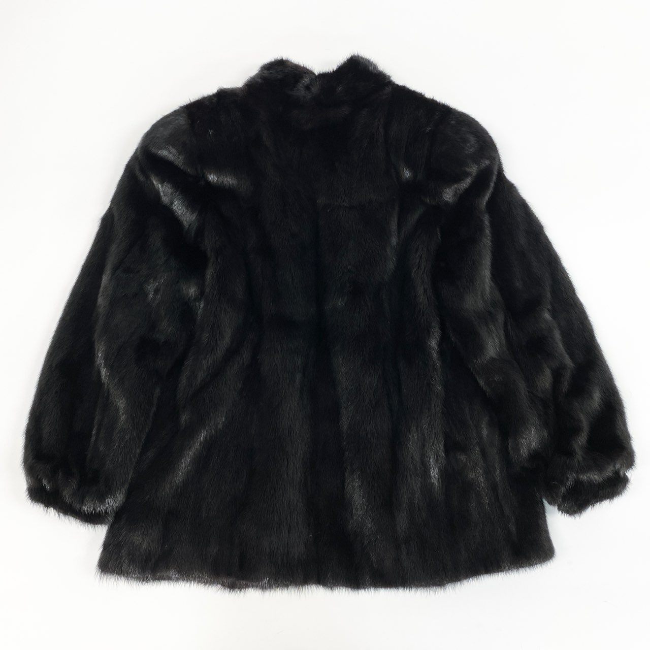 深みのあるジェットブラック系ダークミンクファーを贅沢に使用した高級感あふれるコート。毛足が短めで均一な艶のある光沢が美しく、動くたびに上品な輝きを放ちます。ヒップを覆う68cm丈で、防寒性とエレガンスを兼ね備えたシルエット。フロントは比翼仕立てで、滑らかな裏地が腕通しを快適にします。フォーマルドレスの上からはもちろん、デイリーの上質アウターとしても映える一着です。