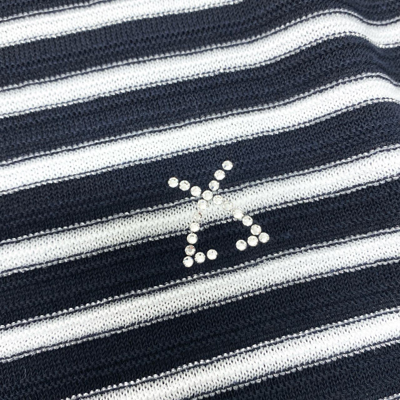 42b7 LEONARD レオナール ニットポロ ペプラム ボーダー ビジュー 40 ネイビー レディース 女性用u02t