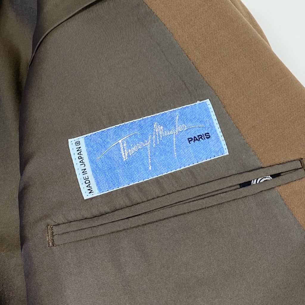 63d8-9 Thierry mugler ティエリー ミューグレー ダブルブレスト スーツ セットアップ ジャケット/スラックスパンツ サイズ48 オリーブ ウール100% メンズ 日本製