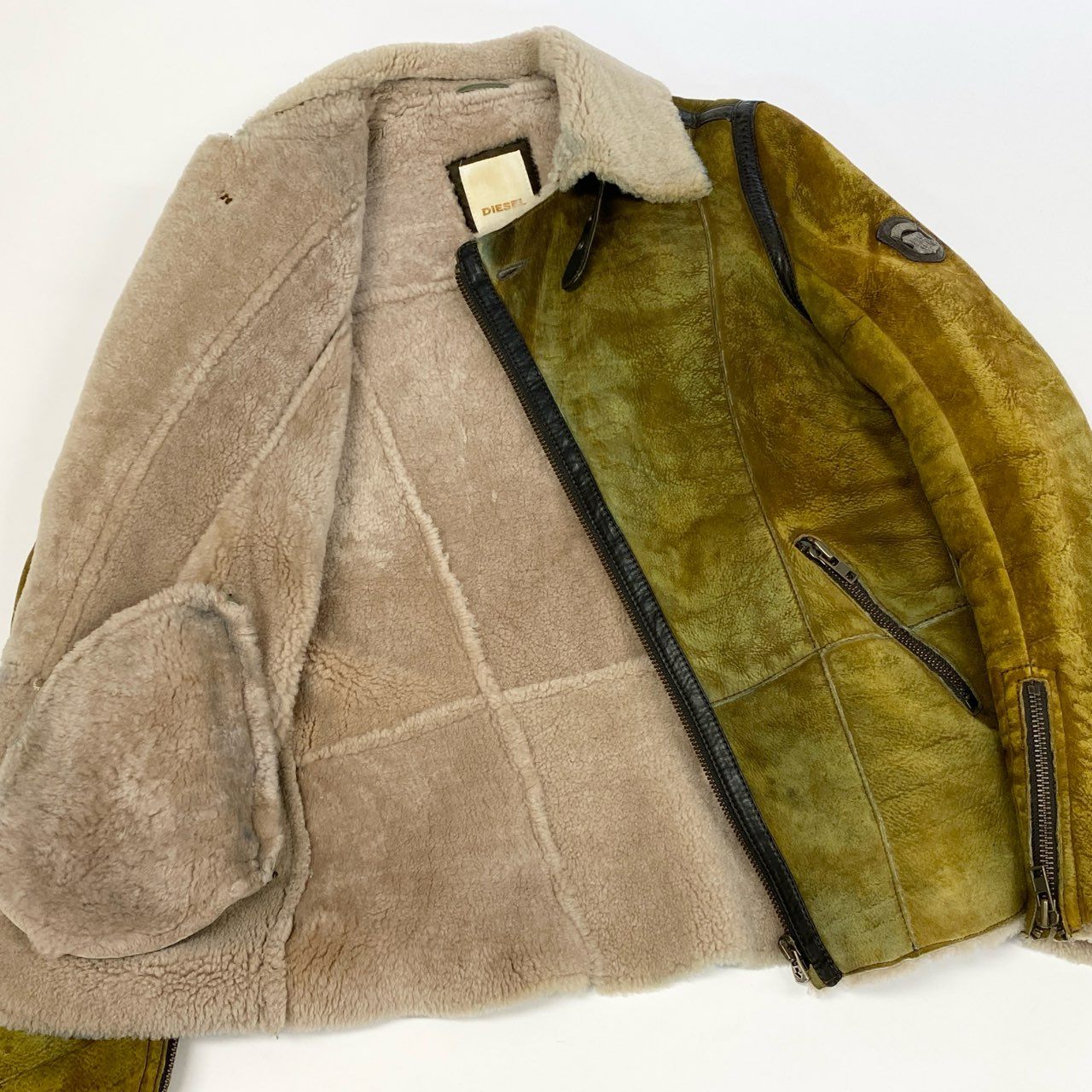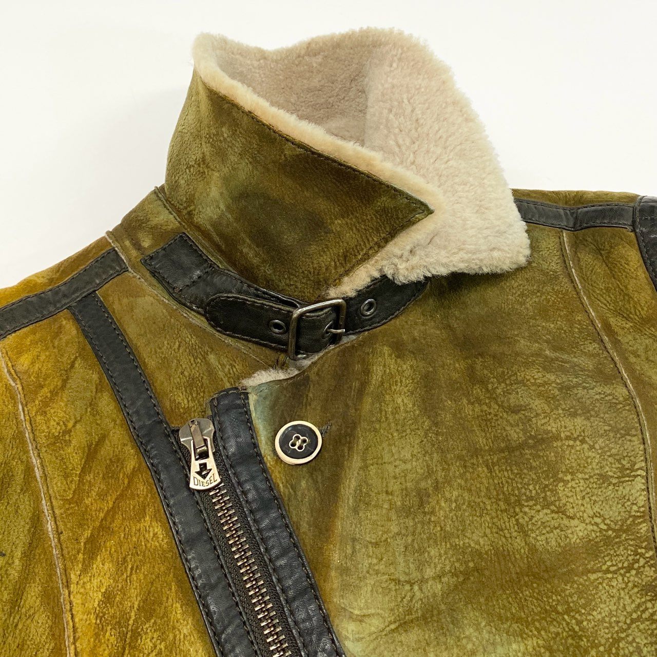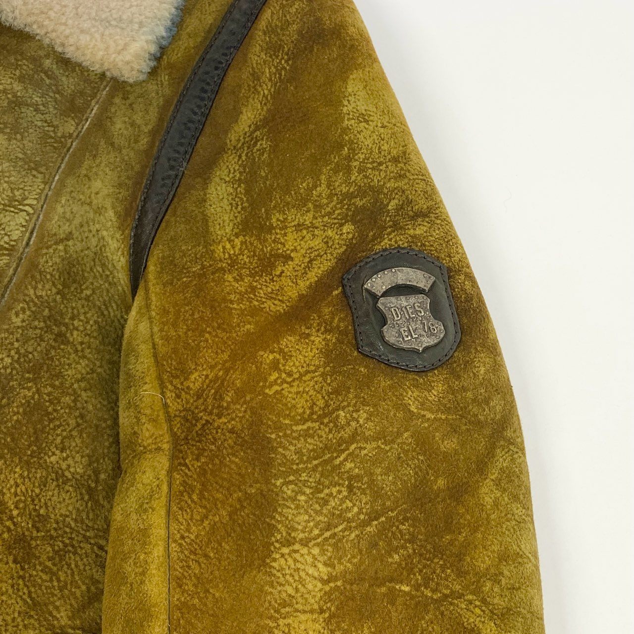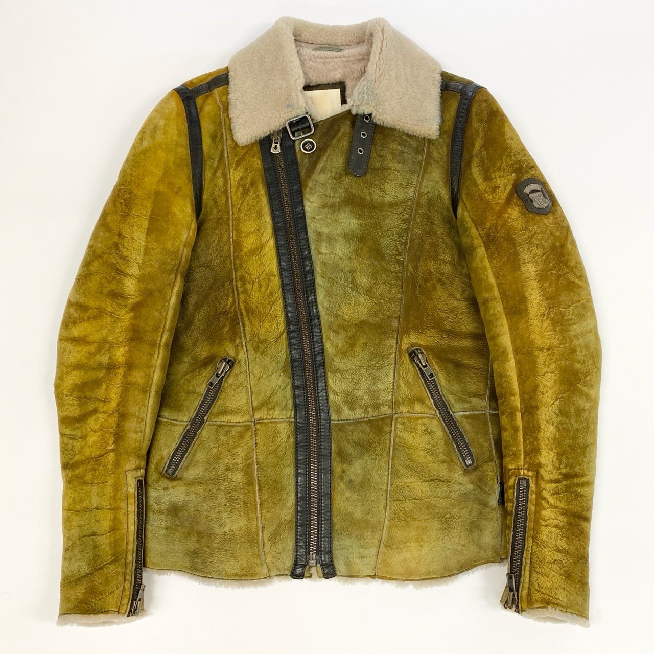 67k7 DIESEL ディーゼル ムートンジャケット ライダースジャケット ヴィンテージ加工 ラムレザー 羊革 Sサイズ イエローブラウン メンズu02t
