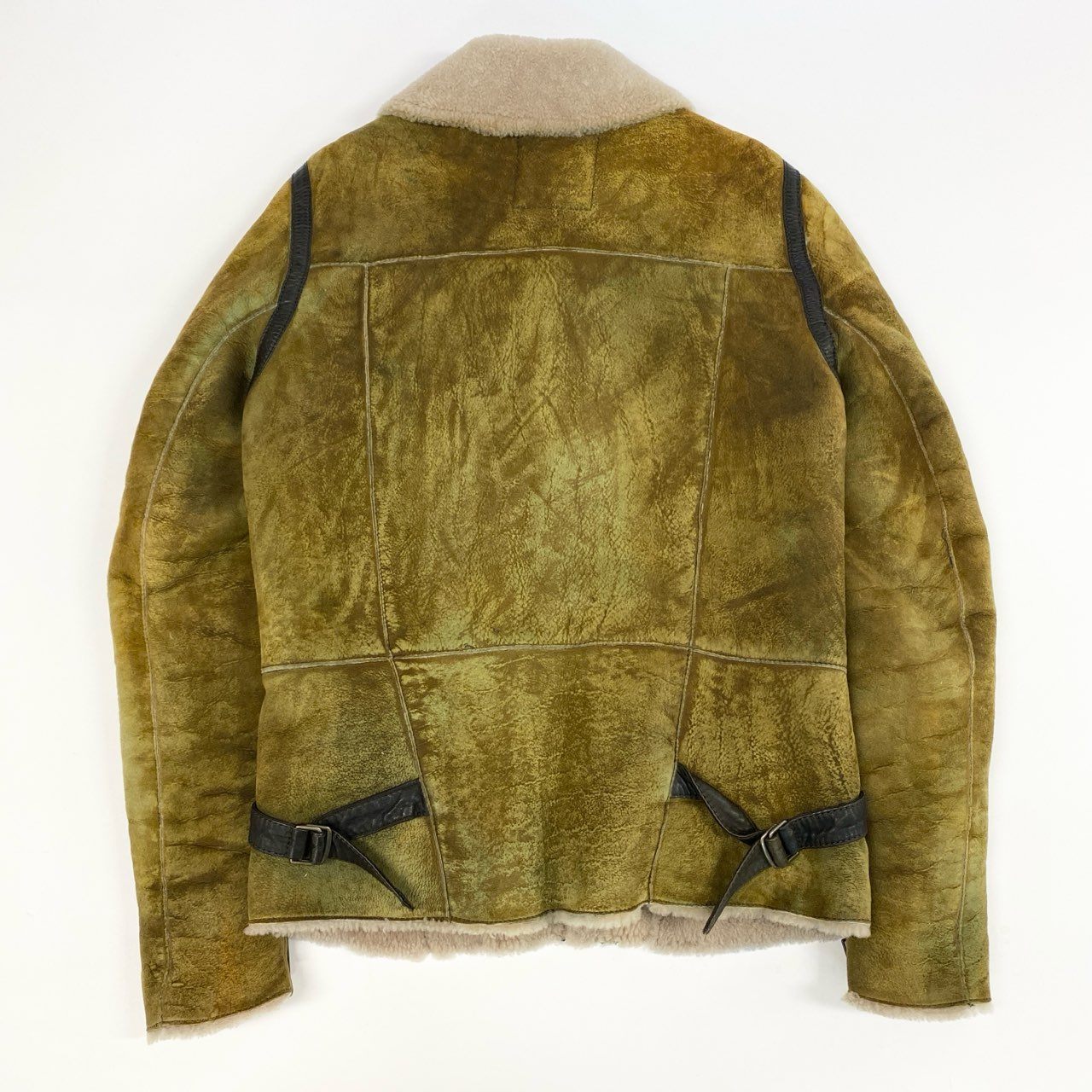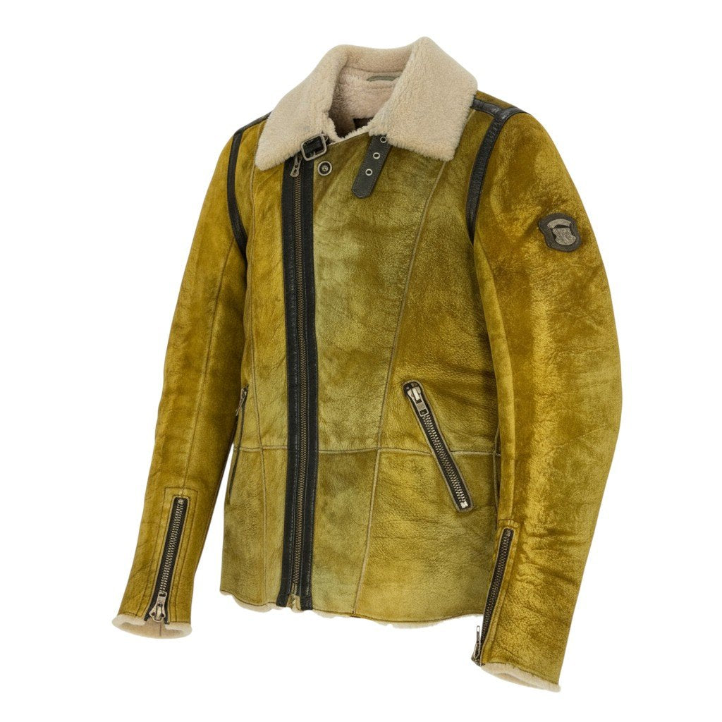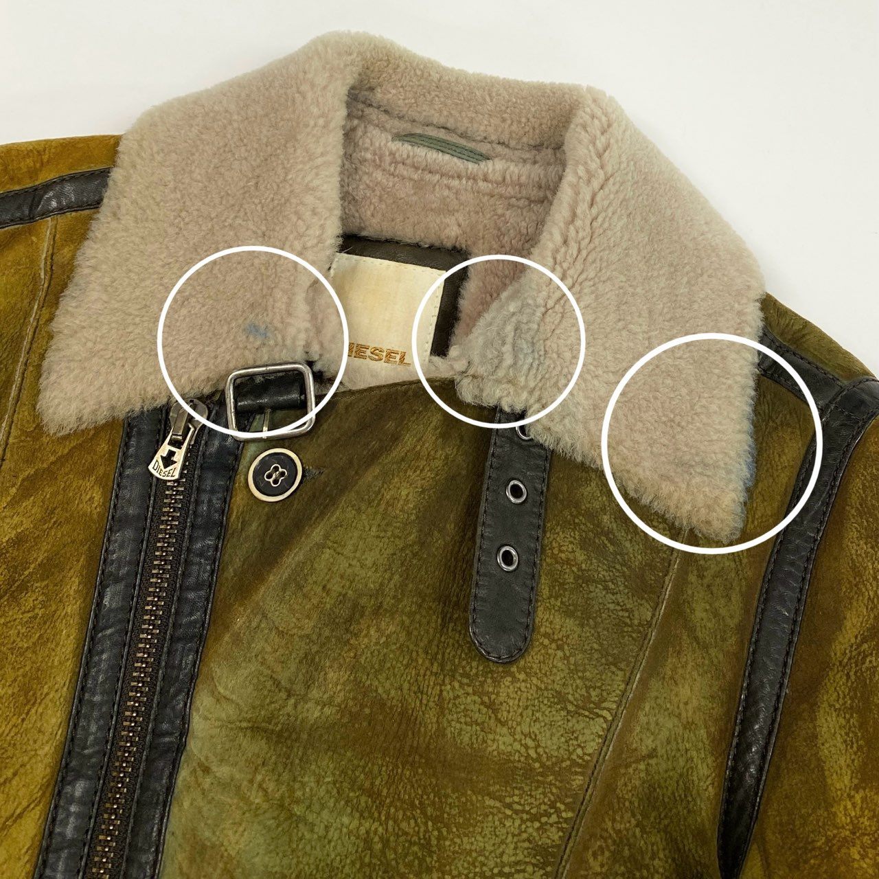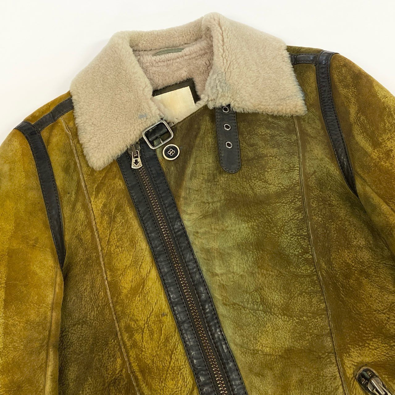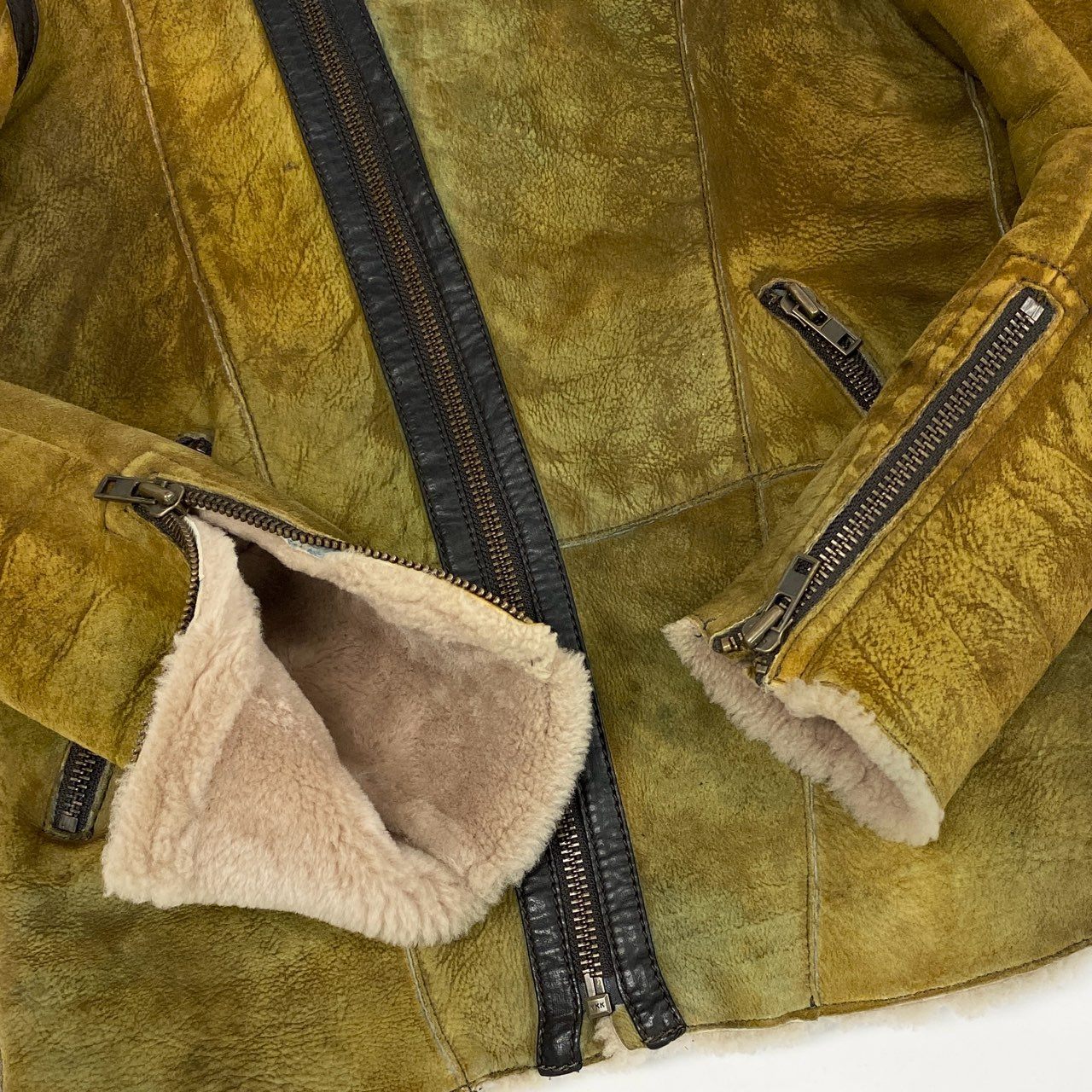 67k7 DIESEL ディーゼル ムートンジャケット ライダースジャケット ヴィンテージ加工 ラムレザー 羊革 Sサイズ イエローブラウン メンズu02t
