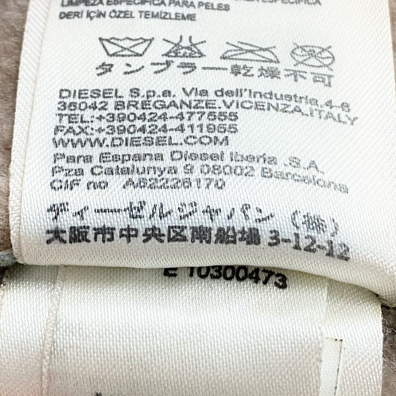 ヴィンテージ感のあるイエローブラウンのラムムートンレザーが存在感を放つ、DIESELのムートンジャケットです。毛足のある裏地と大きめのボア襟が高い防寒性と無骨なミリタリー感を演出。アシンメトリーに走る斜めジップや腕のワッペンなど、ブランドらしい個性とクラフト感のあるデザインが魅力です。レザージャケットとしては珍しい深みのあるカラーが、経年変化でさらに風合いを増す一着。冬の主役アウターとして、シンプルなコーデに合わせるだけで雰囲気が決まります。