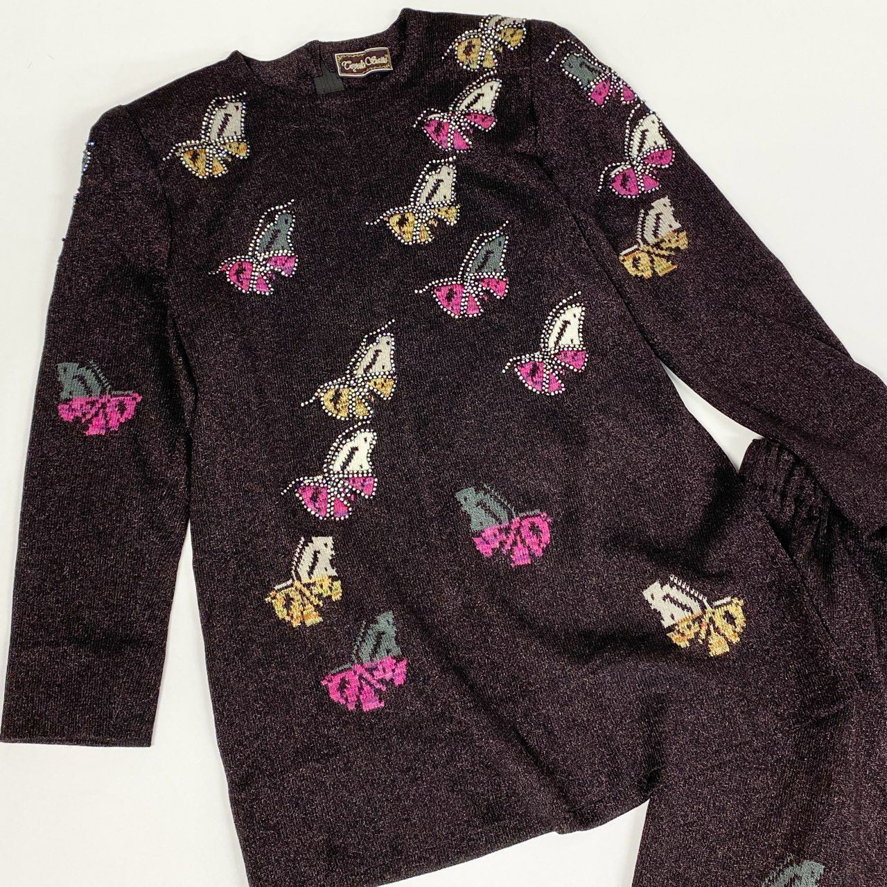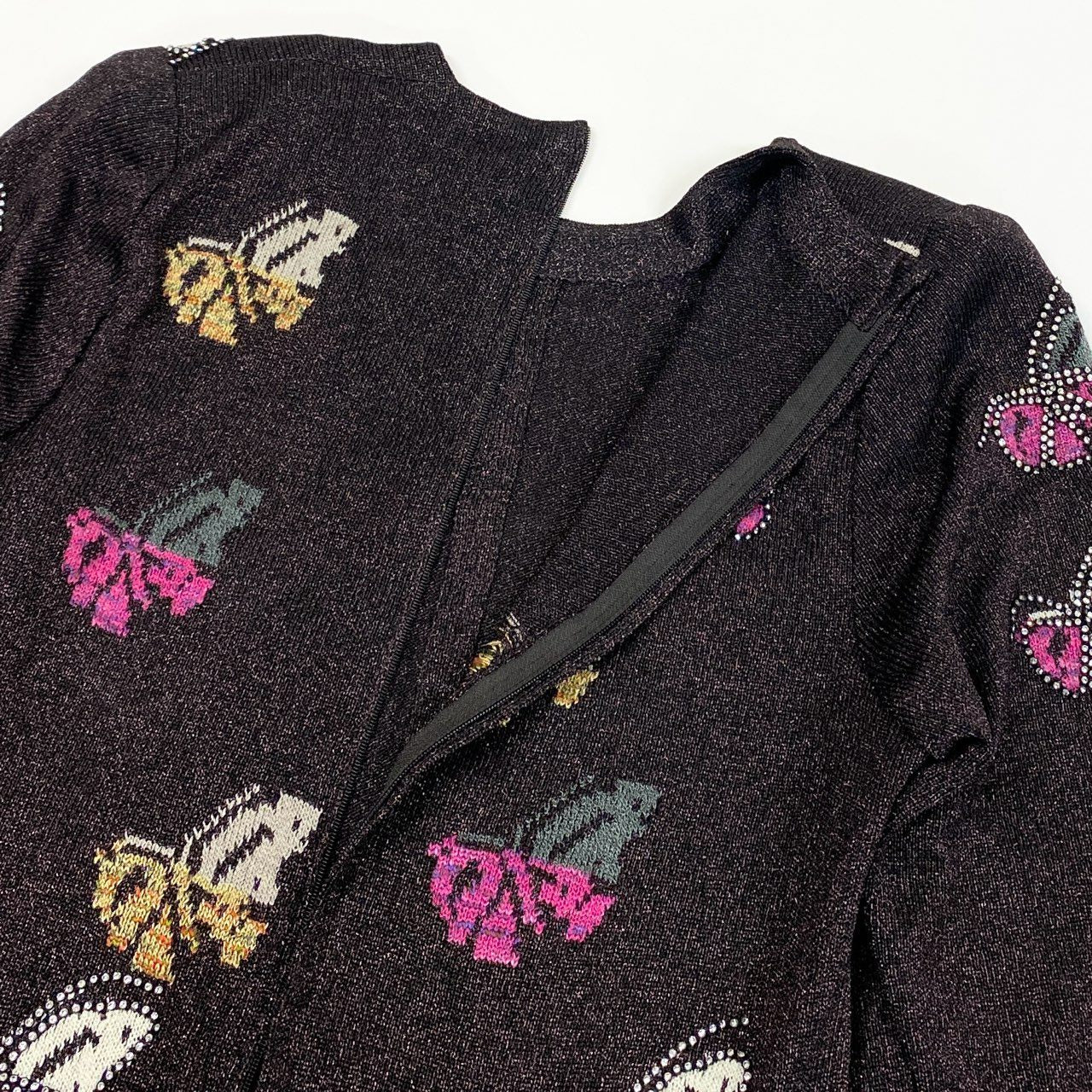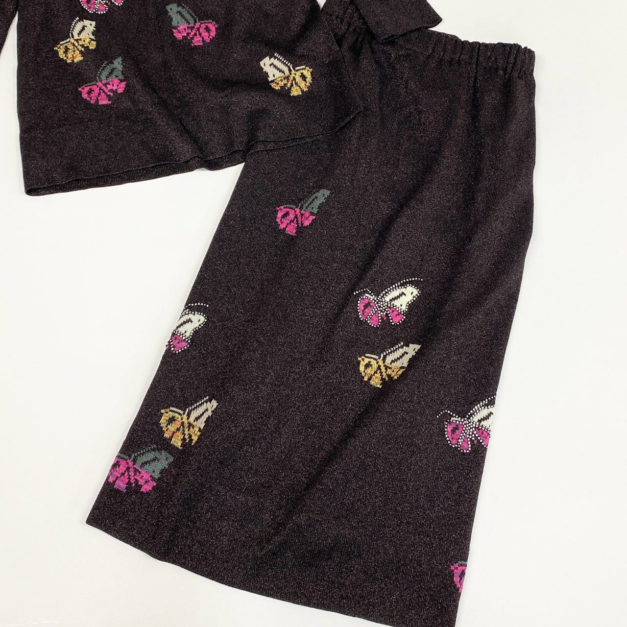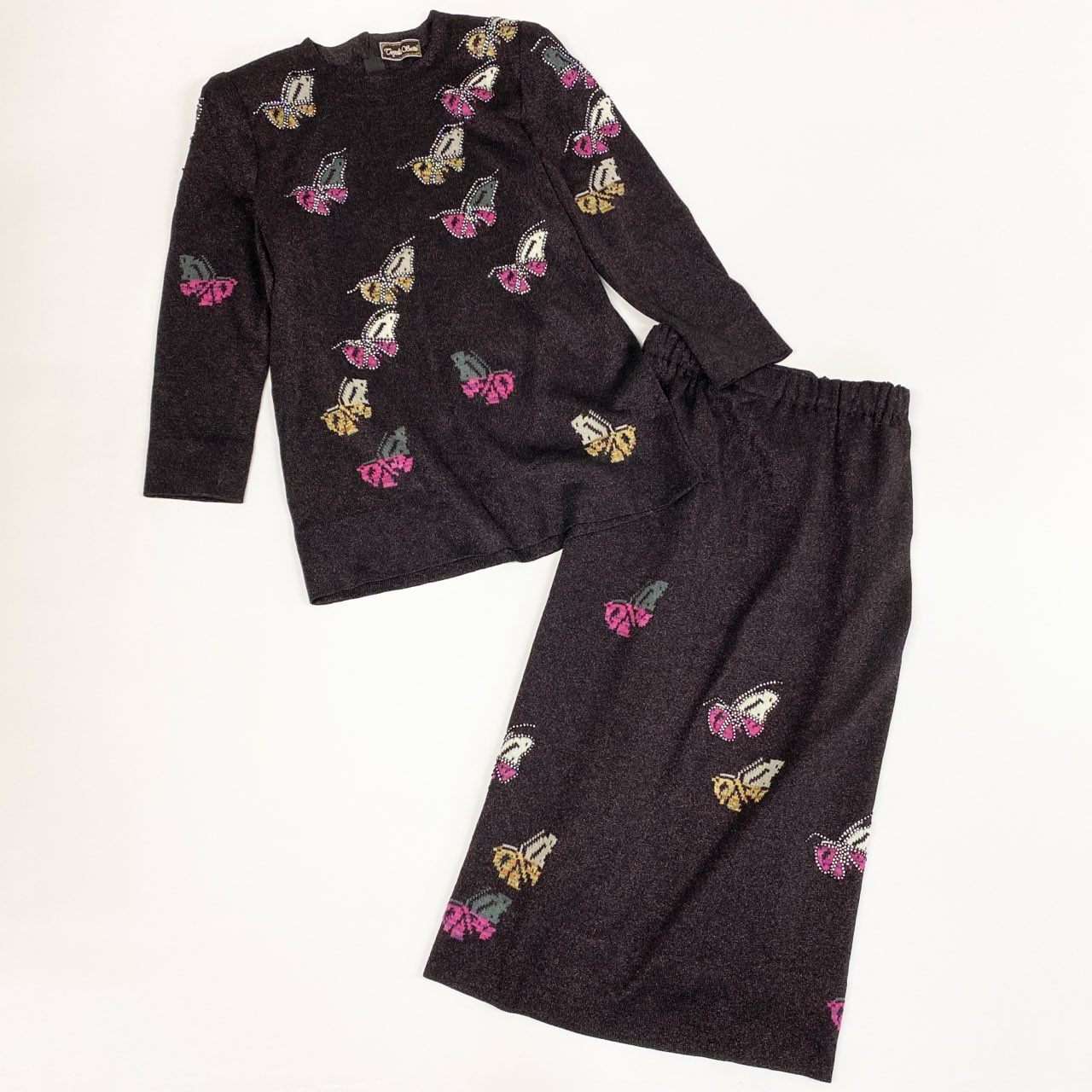 83i29 TOYOKO SAITO サイトウトヨコ 斎藤都世子 スカートセットアップ ニットセットアップ 蝶 ラインストーン マルチカラー レディースo07t