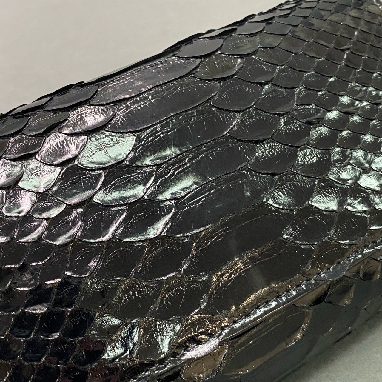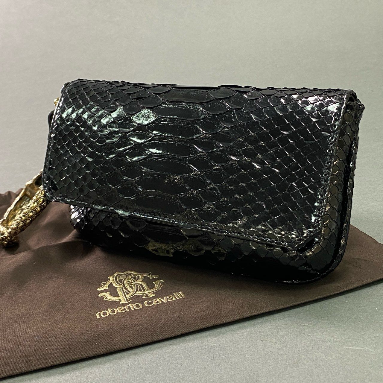 Fc10 roverto cavalli ロベルトカヴァリ ウロボロスカラビナ パイソンレザー ハンドバッグ ポーチ ブラック ゴールド スネーク カバン レオパード イタリア製