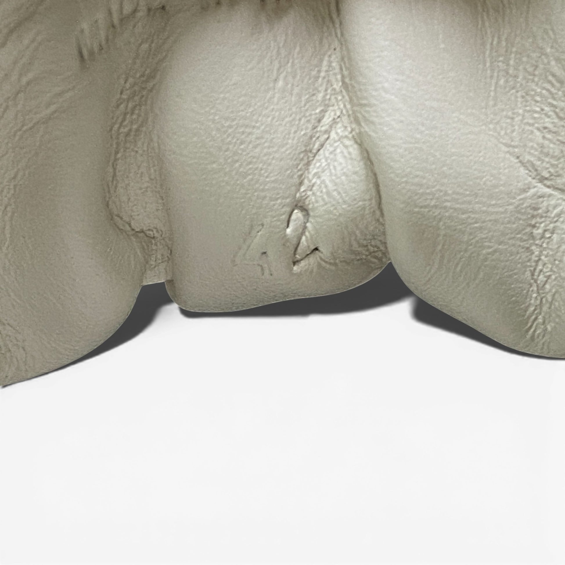 JIL SANDERらしいミニマルな美しさが際立つ、厚底レザースニーカーです。 清潔感のあるホワイトカラーと、無駄を削ぎ落とした洗練されたフォルムが印象的です。 マットな質感のレザー素材を使用し、上品さと耐久性を兼ね備えています。 ボリュームのあるソールがスタイルアップ効果を演出し、カジュアルからモードなコーディネートまで幅広く活躍する一足です。