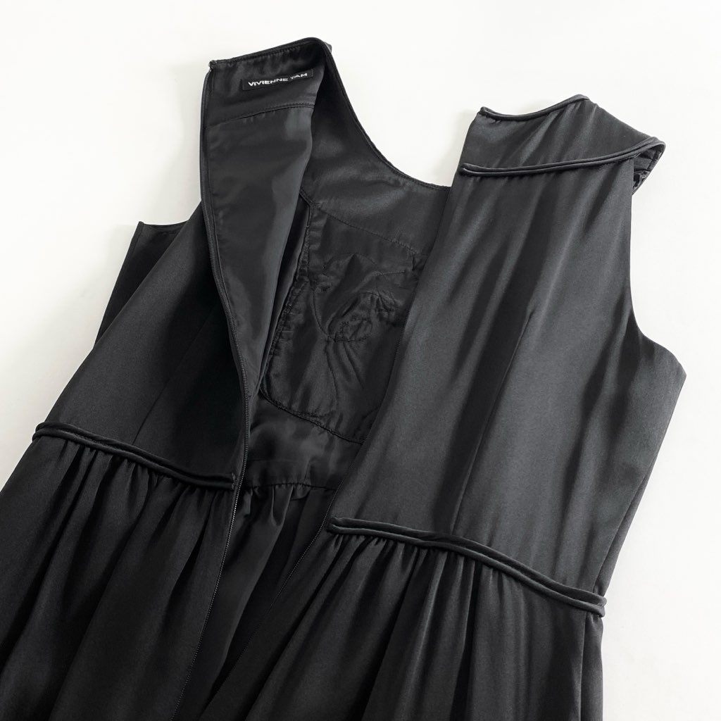 22f8 VIVIENNE TAM ヴィヴィアンタム ノースリーブワンピース ドレス バックジップ ひざ丈 016-242128 0 ブラック シルク