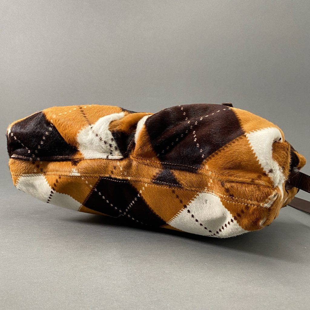 Eh15 Felisi フェリージ ショルダーバッグ 斜めかけバッグ ハラコ×レザー コンビ アーガイルチェック ブラウン×キャメル レザー ハラコ ユニセックス 男女兼用