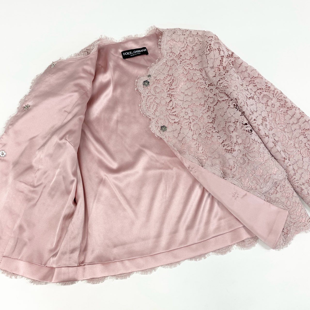 8d2 【美品】 DOLCE&GABBANA ドルチェアンドガッバーナ 総レース ノーカラージャケット カーディガン サイズ40 ピンク レディース イタリア製
