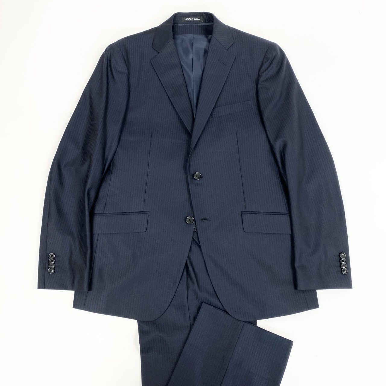 深みのあるミッドナイトネイビーに繊細なストライプが入った、ニコルセレクションのスリーピーススーツ。滑らかで上品な光沢を持つウール混素材を採用し、クラシックかつスタイリッシュな印象を演出します。ベスト付きの構成で、ジャケットを脱いでもフォーマルな印象を維持。ビジネスシーンはもちろん、式典やパーティーなどのドレスアップにも最適な一着です。
