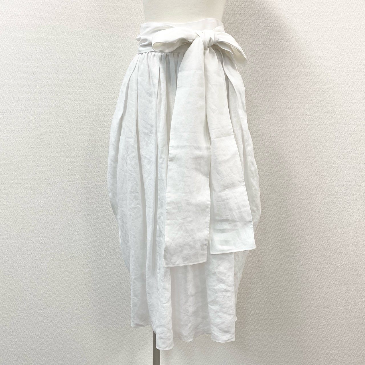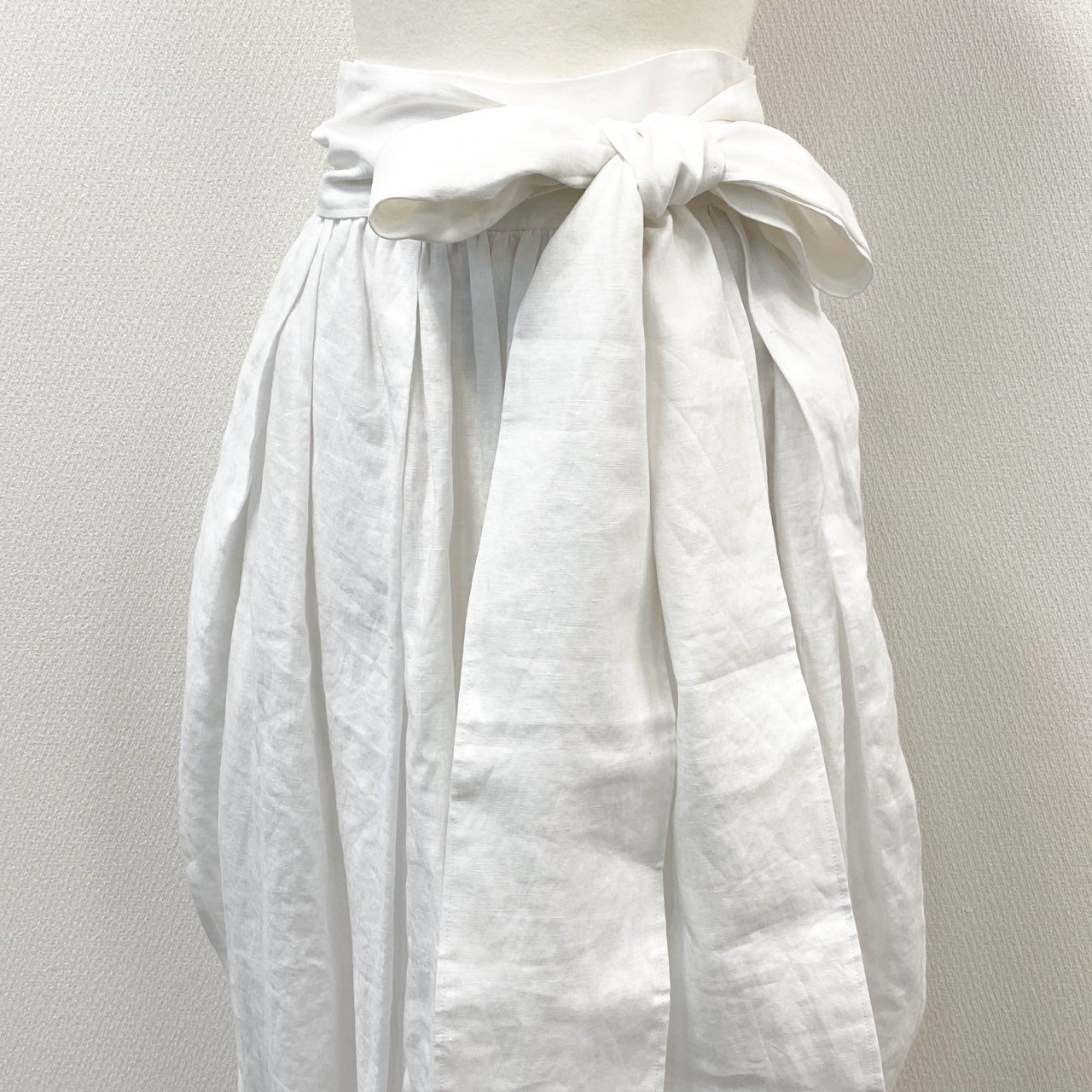 17f30 《美品》 MYLAN マイラン コクーンリボンスカート ロングスカート フレアスカート MY23SS-SK008 サイズF ホワイト リネン レディース 女性用