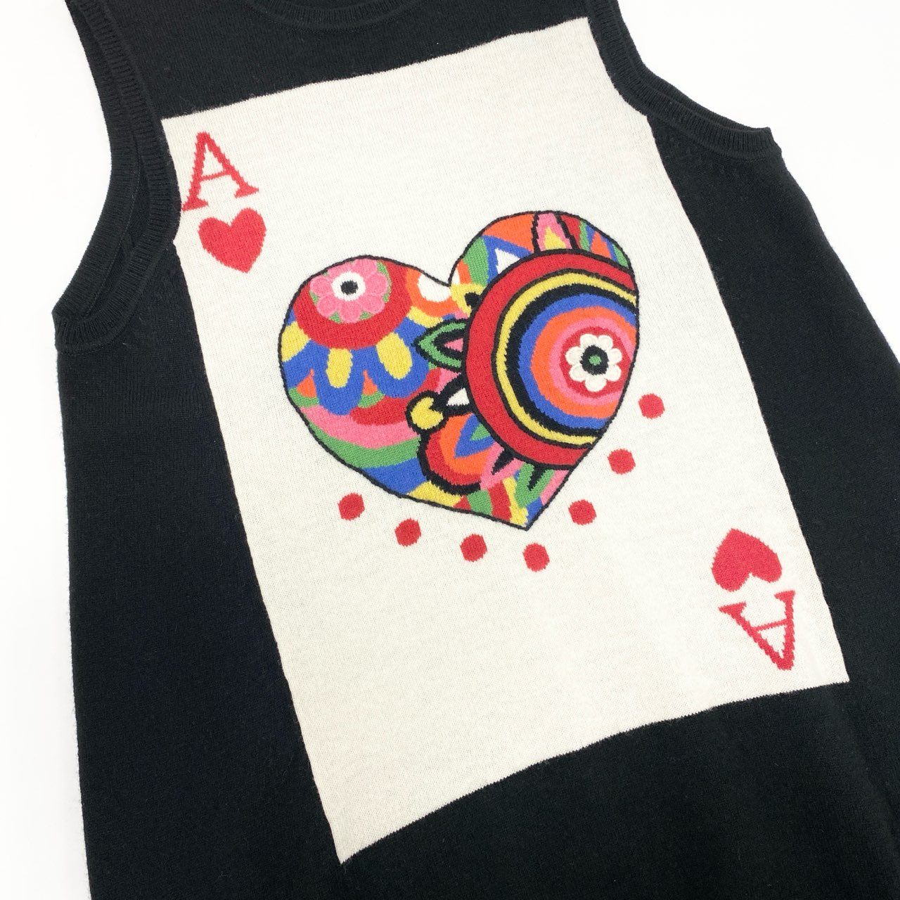 18k20 TOKUKO 1er VOL トクコプルミエヴォル ノースリーブ ニットワンピース 膝丈 トランプ ハート柄 花柄 レディース 女性用 9 ブラックu02t