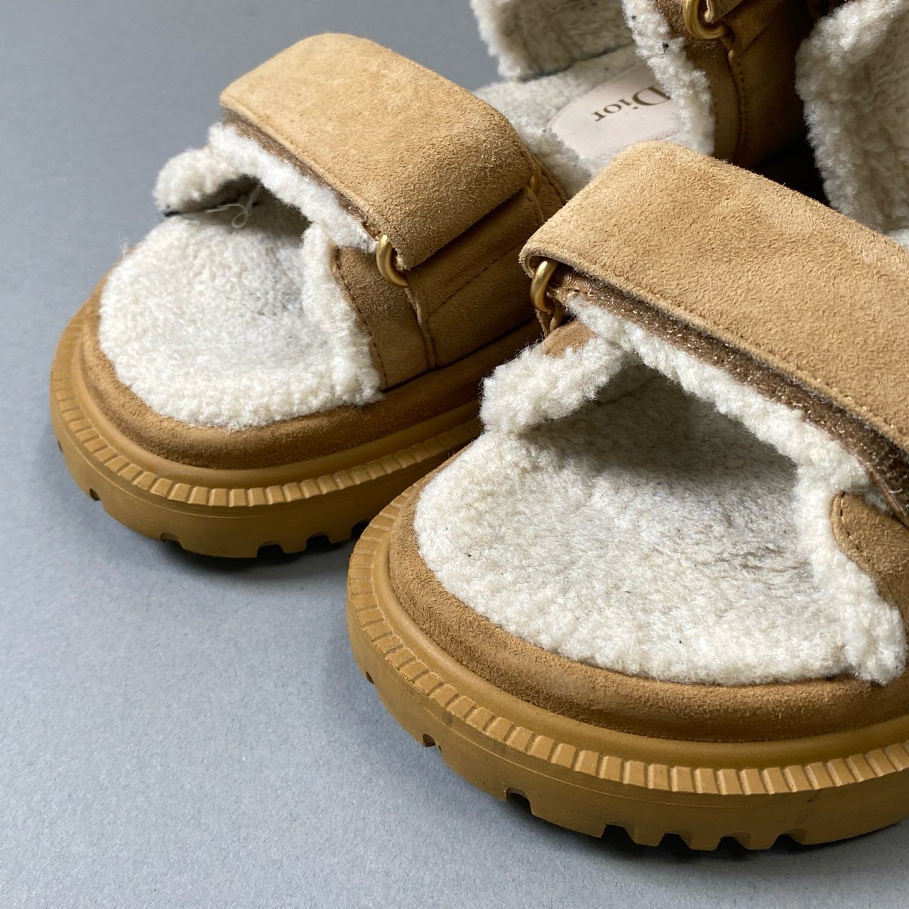 3i30 Christian Dior クリスチャンディオール Dioract ディオールアクト サンダル もこもこ イタリア製 36サイズ ベージュ アイボリー ゴートスキン レディースt18r