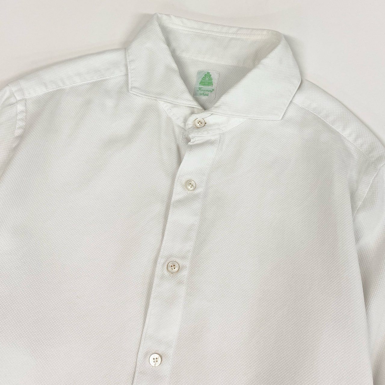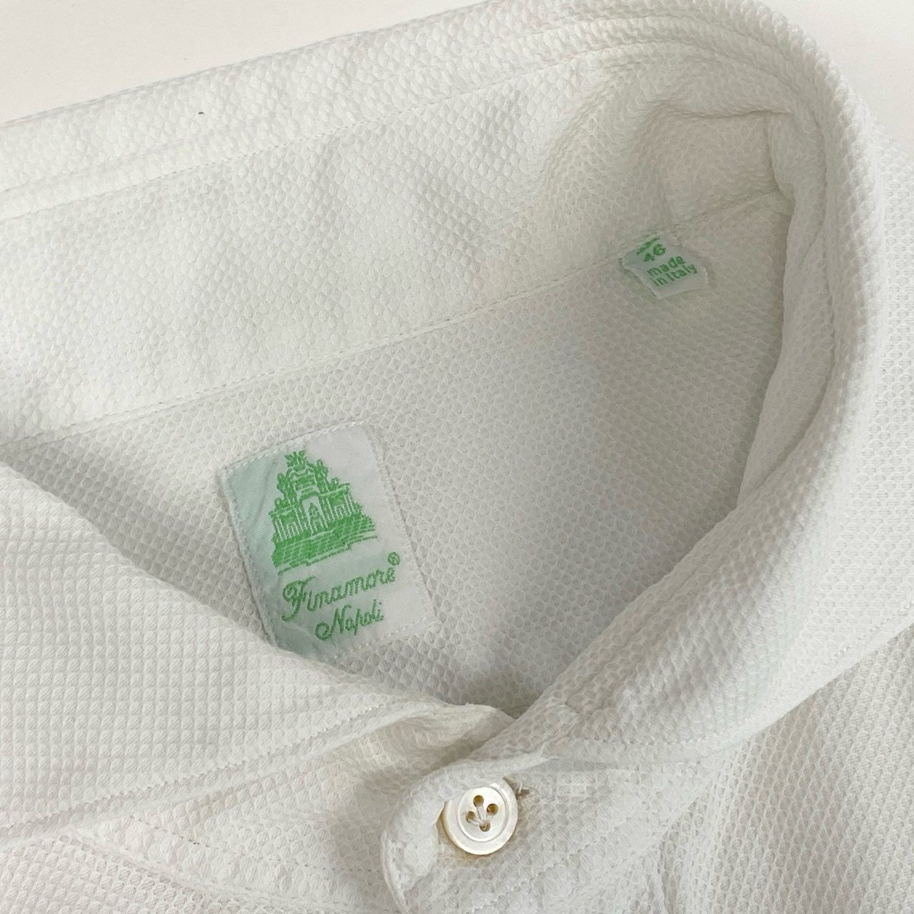 65i29 Finamore NAPOLI フィナモレ 長袖シャツ ドレスシャツ トップス サイズ46 ホワイト コットン メンズ イタリア製u02t