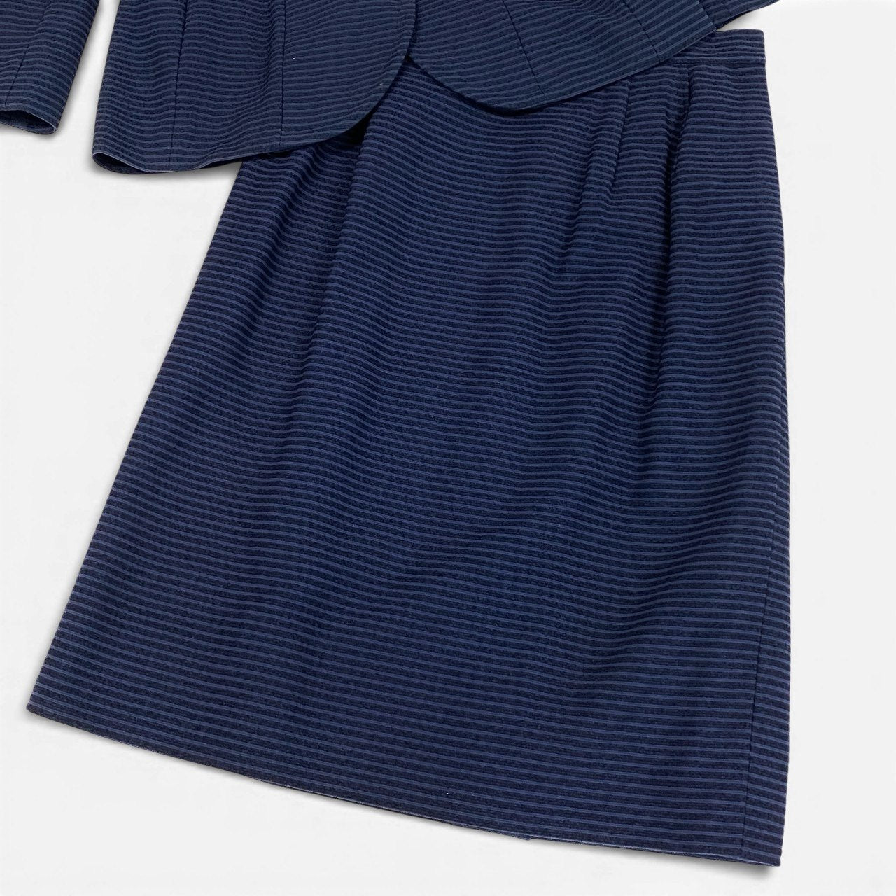 Yves Saint Laurent(イヴ・サンローラン)のレディースセットアップスカートです。深みのあるミッドナイトネイビーカラーに、フロントのゴールドメタルボタンがクラシカルで上品なアクセント。生地は細かな凹凸感のあるマットな質感で、きちんと感のある佇まいに仕上がっています。通勤や式典、セレモニーなどフォーマルシーンはもちろん、アクセサリー次第でエレガントなお出かけスタイルにも活躍する一着です。