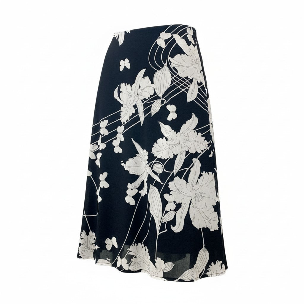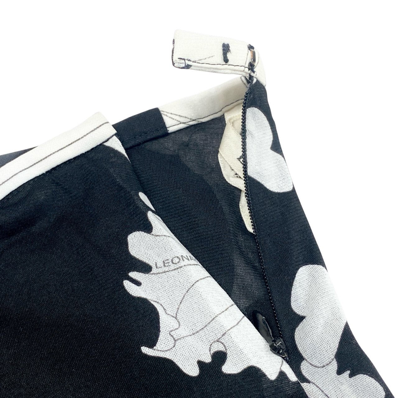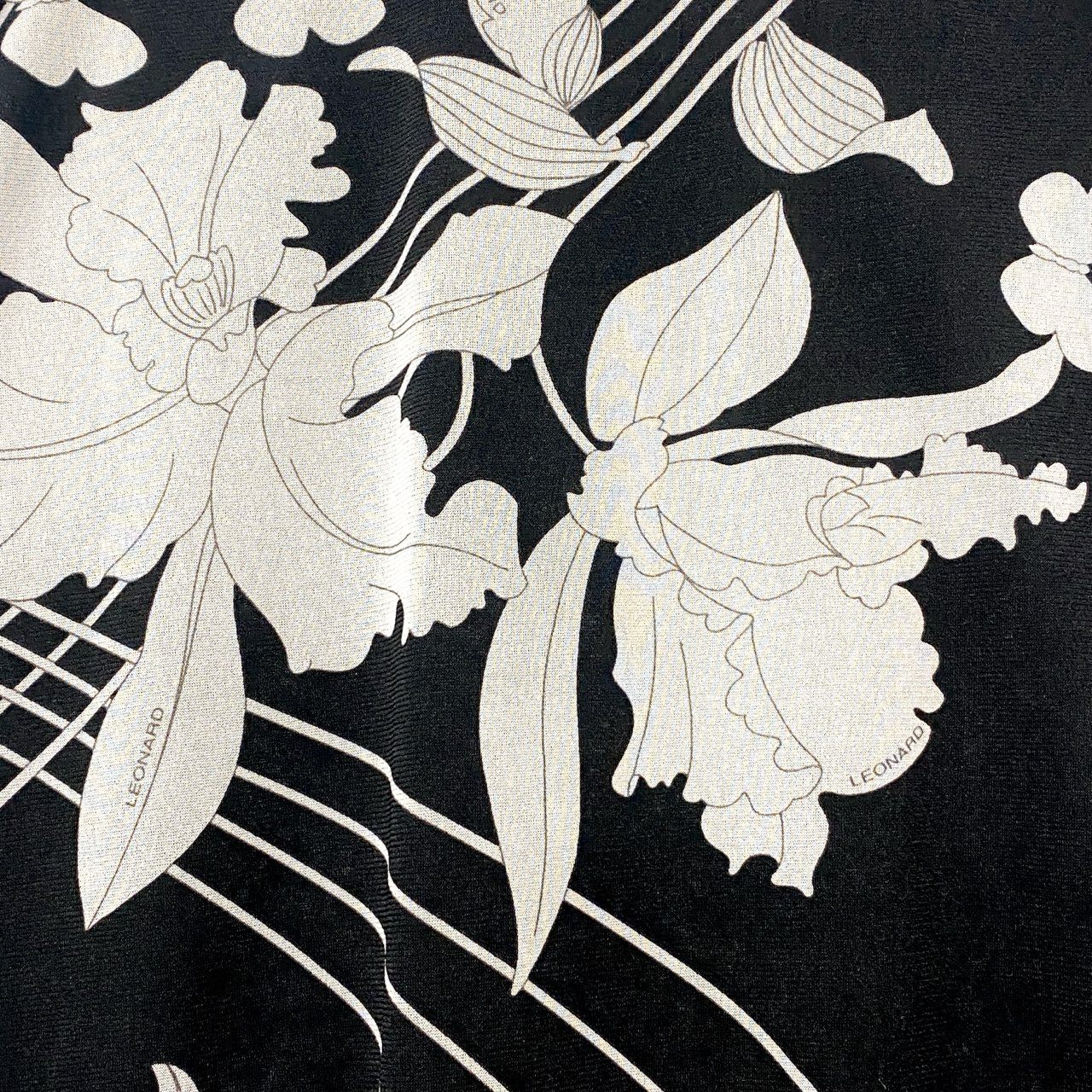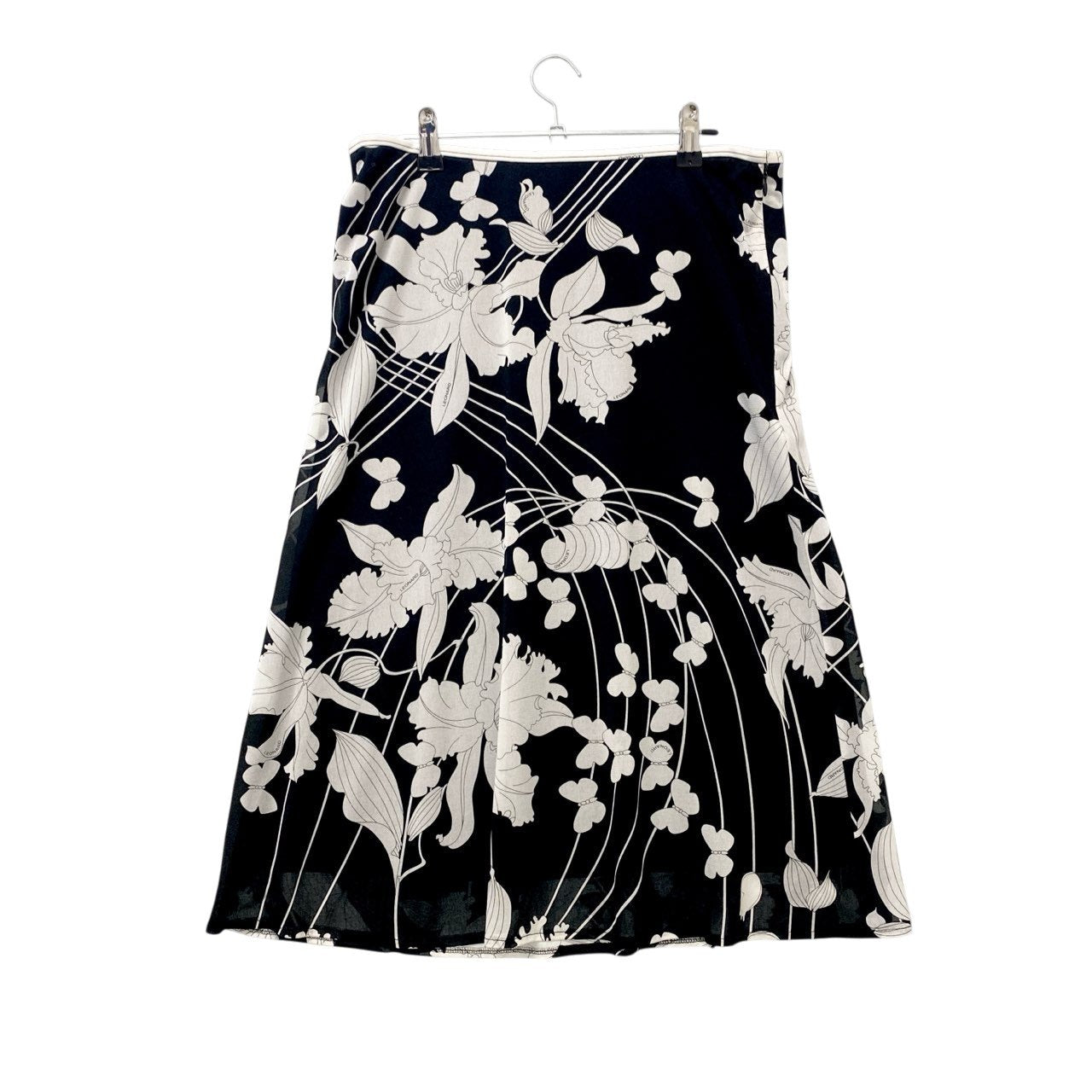 73c13 LEONARD レオナール カンカン素材 美しい花柄プリント フレアスカート 膝丈スカート 73 モノトーン レディースu02t