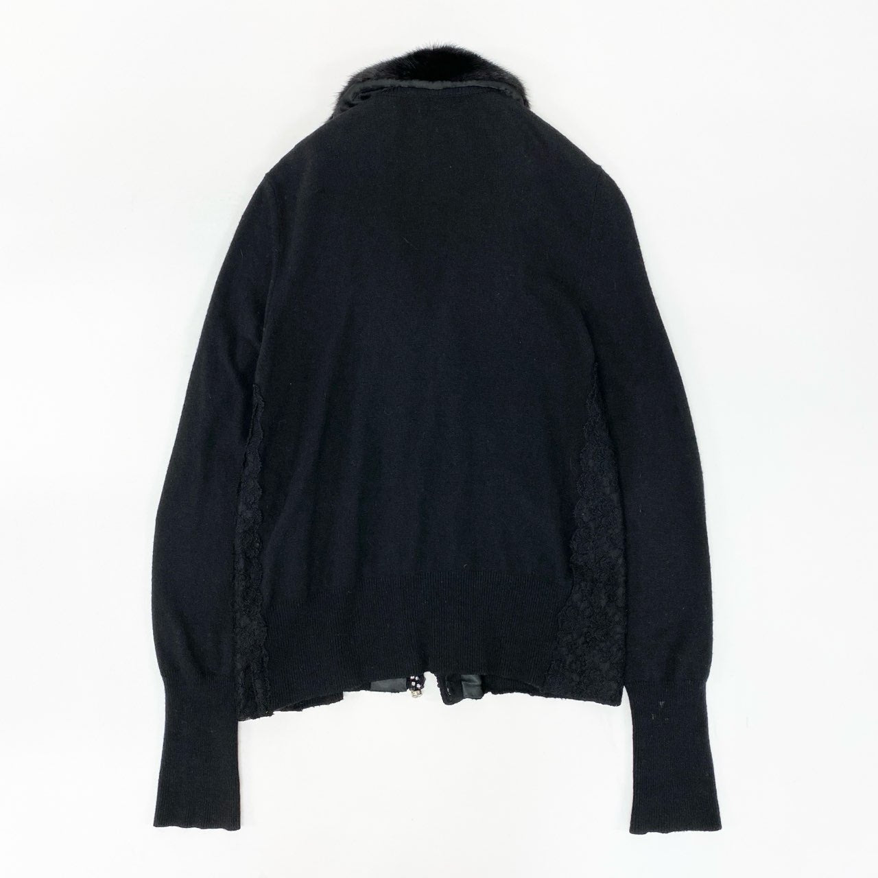 65j9 Blumarine ブルマリン ニットカーディガン 装飾 ニットセーター ラインストーン ビーズ レース 42サイズ ブラック レディースo07t