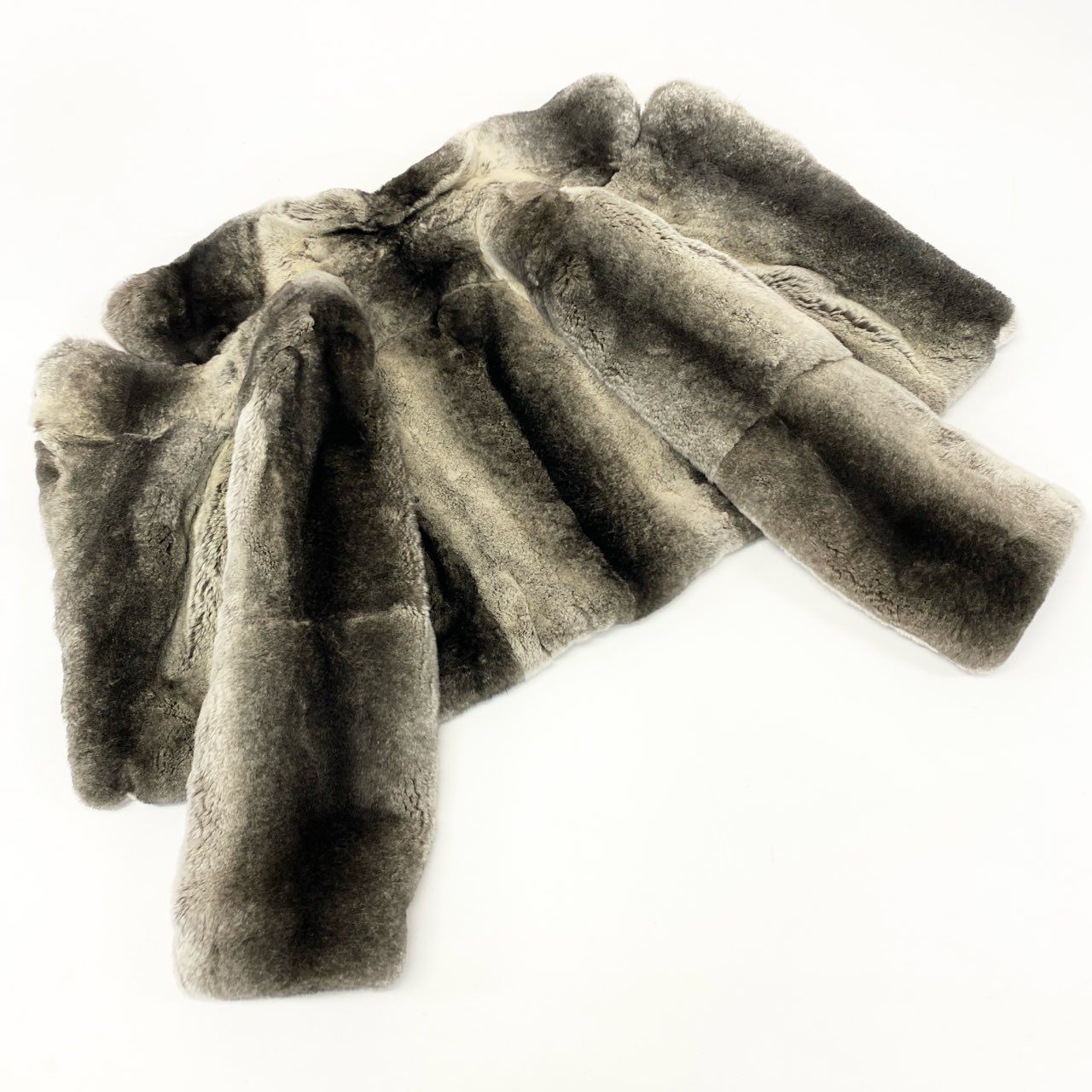 ふんわりと柔らかい手触りが魅力のレッキスラビットファーを使用した、セオリーリュクスのショートファージャケットです。グレー〜ブラウンを含むニュアンスカラーが、高級感と女性らしい上品な印象を引き立てます。ショート丈のため、ワンピース・スカート・デニムなど幅広いスタイリングに合わせやすいのもポイント。特別なお出かけから日常の冬スタイルの格上げまで、一枚で主役になるアウターです。