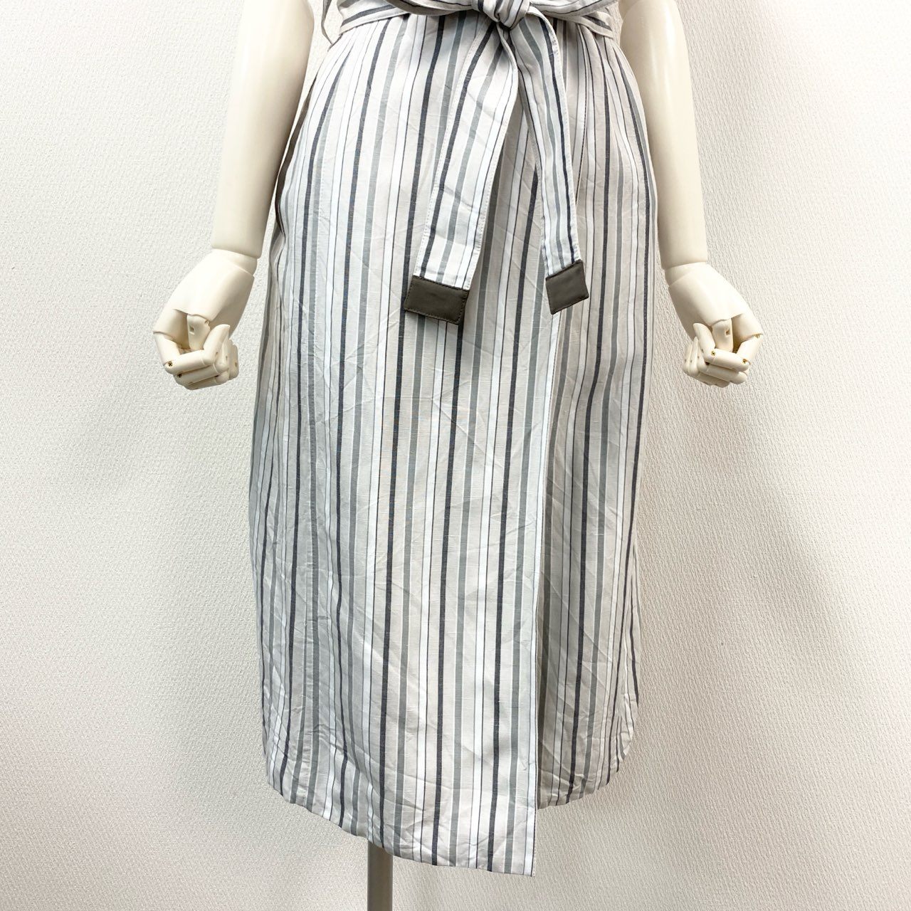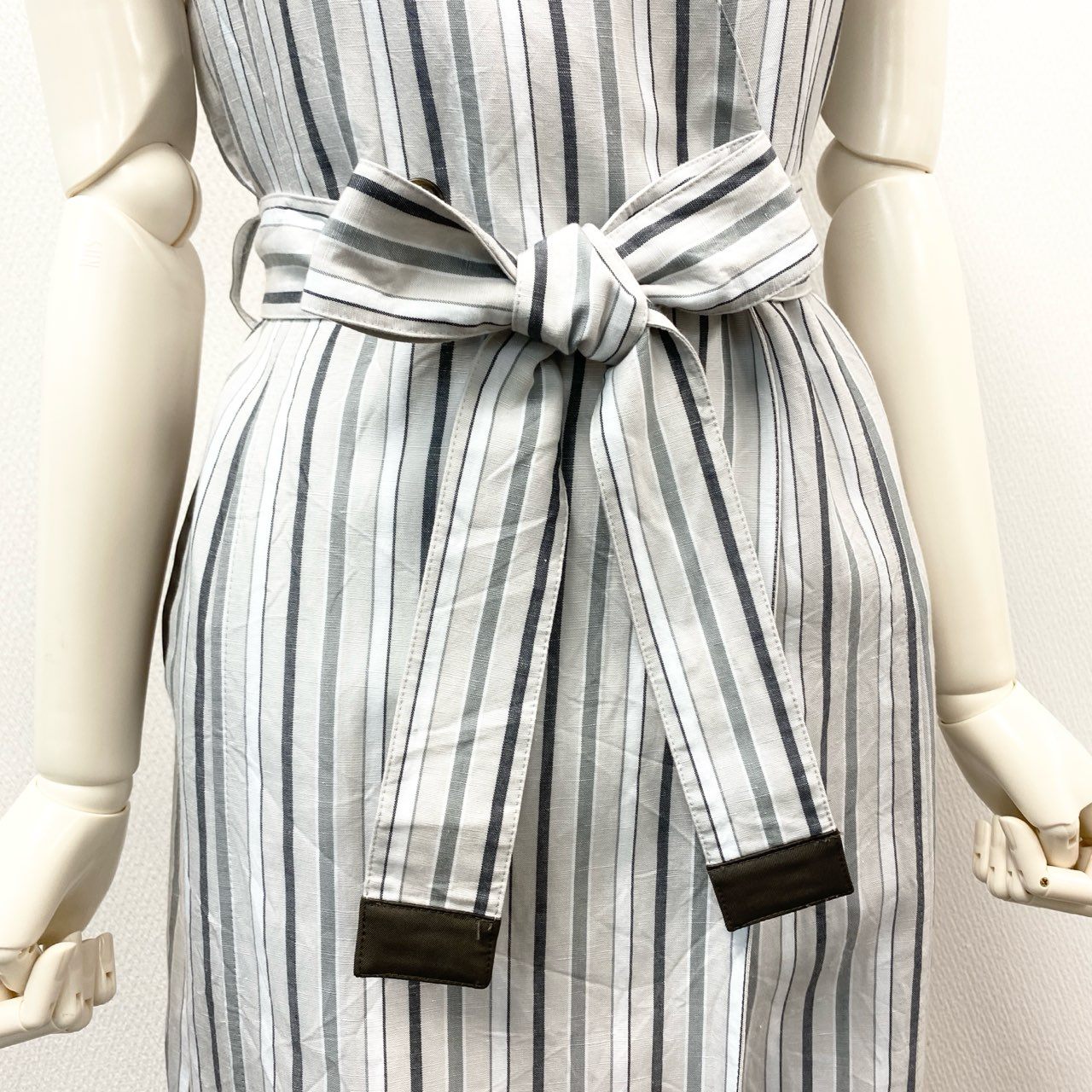 80k11 《美品》 MORABITO モラビト ノースリーブ リネンブレンド ストライプコート 38 ホワイトグレー ワンピースt18r