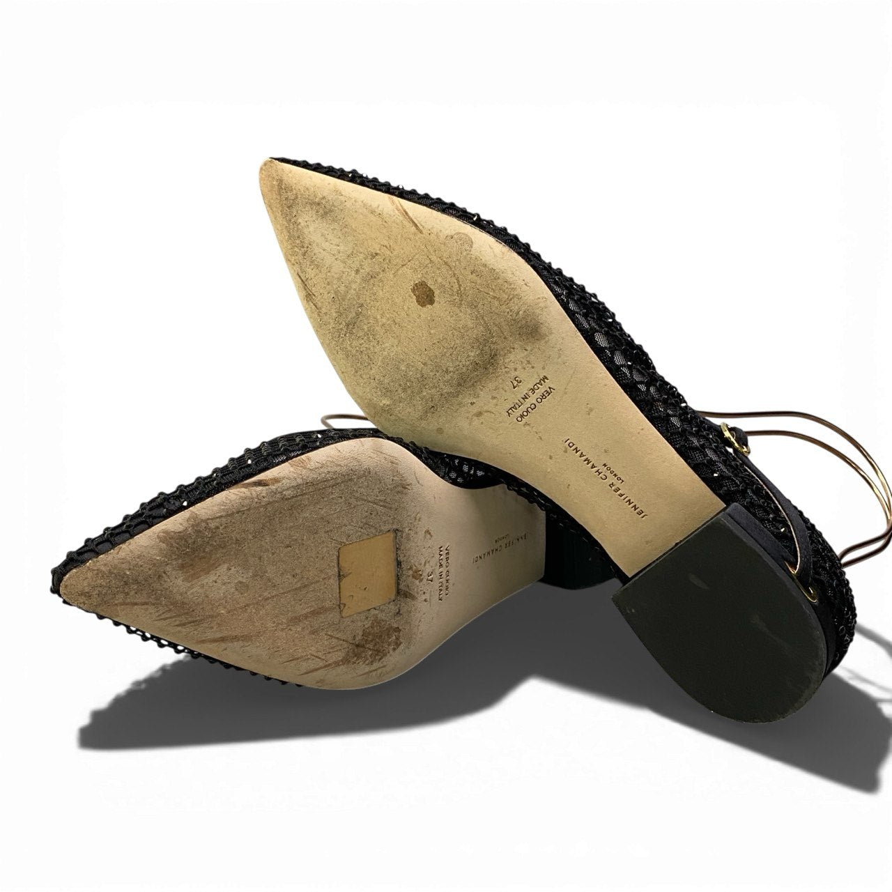 1k26 JENNIFER CHAMNDI ジェニファー チャマンディ メリージェーンパンプス ポインテッドトゥ パンプス ローヒール ラインストーン アンクルストラップ レディース 女性靴 イタリア製 37 ブラックu02t