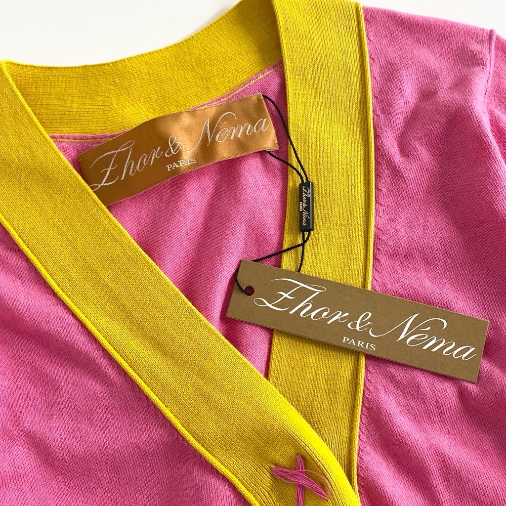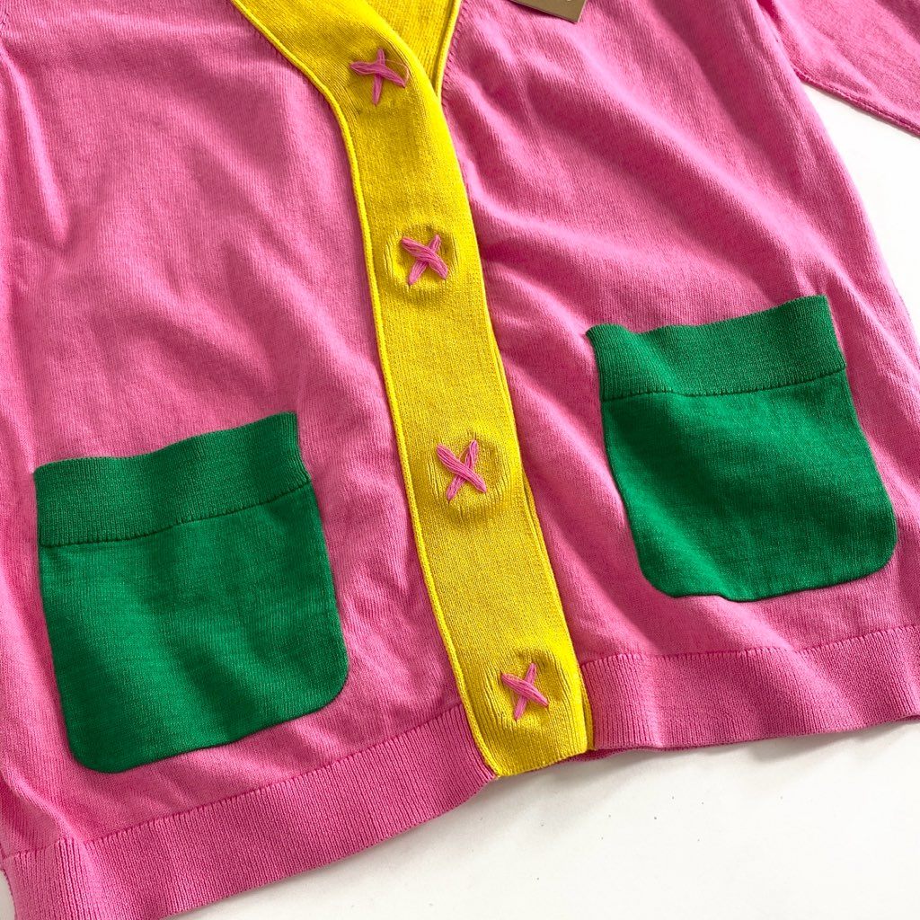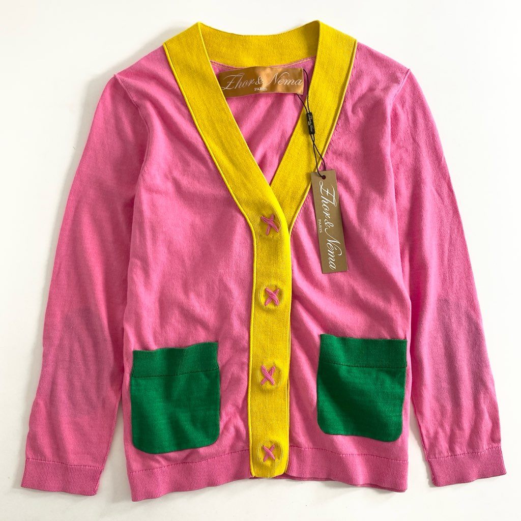 51f18 【未使用品】 Zhor&Nema ゾーアンドネマ クレイジーパターン コットンニット ニットカーディガン 薄手カーディガン サイズS マルチカラー レディース