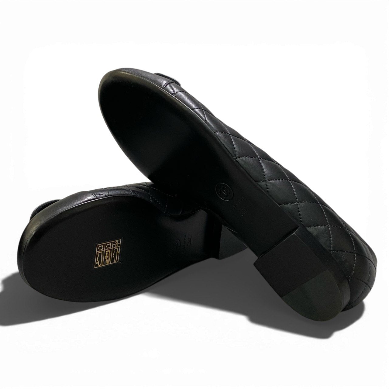 ブラックの上質なスムースレザーに、サイドはキルティングステッチが施されたCHANELのパンプスです。甲部分にはゴールドのココマーク付きフラップがあしらわれ、ラグジュアリーなアクセントになっています。マットなレザーの質感と上品な丸みのあるトゥデザインがクラシカルな印象を演出します。デイリー使いはもちろん、オフィススタイルやフォーマルシーンにも活躍する洗練された一足です。