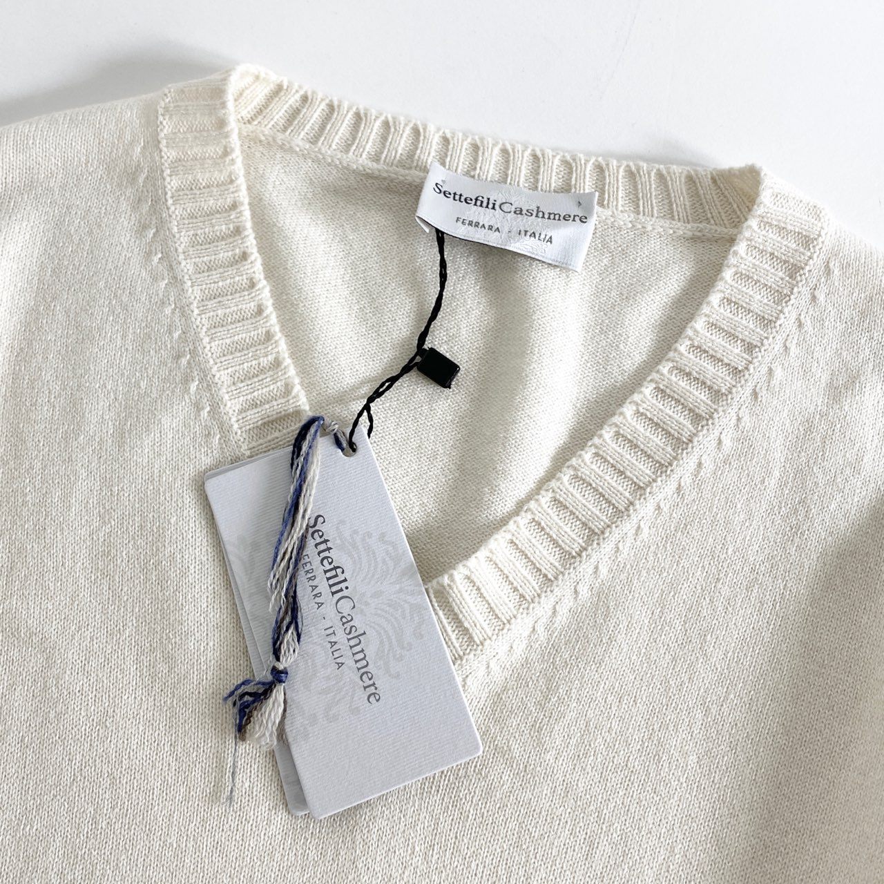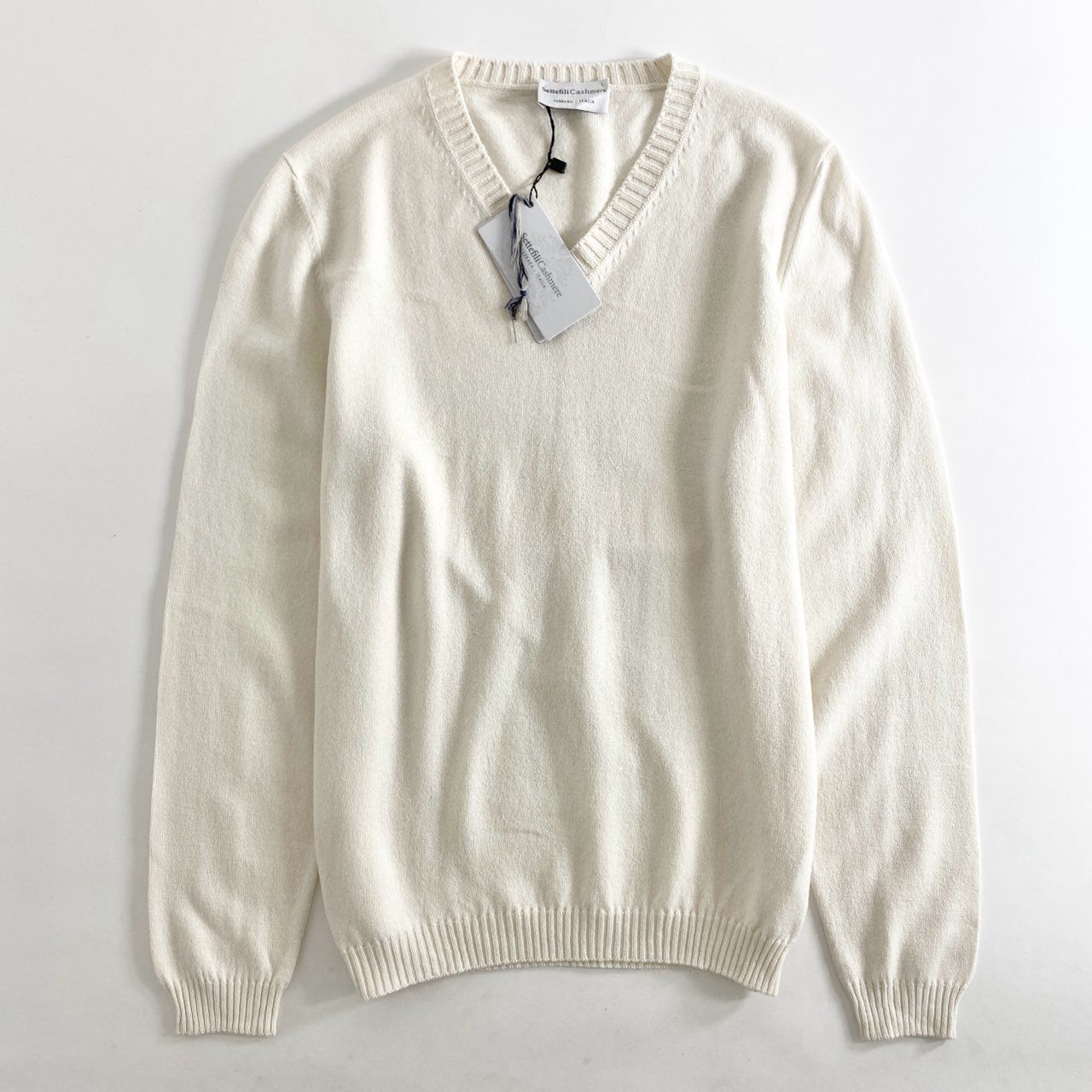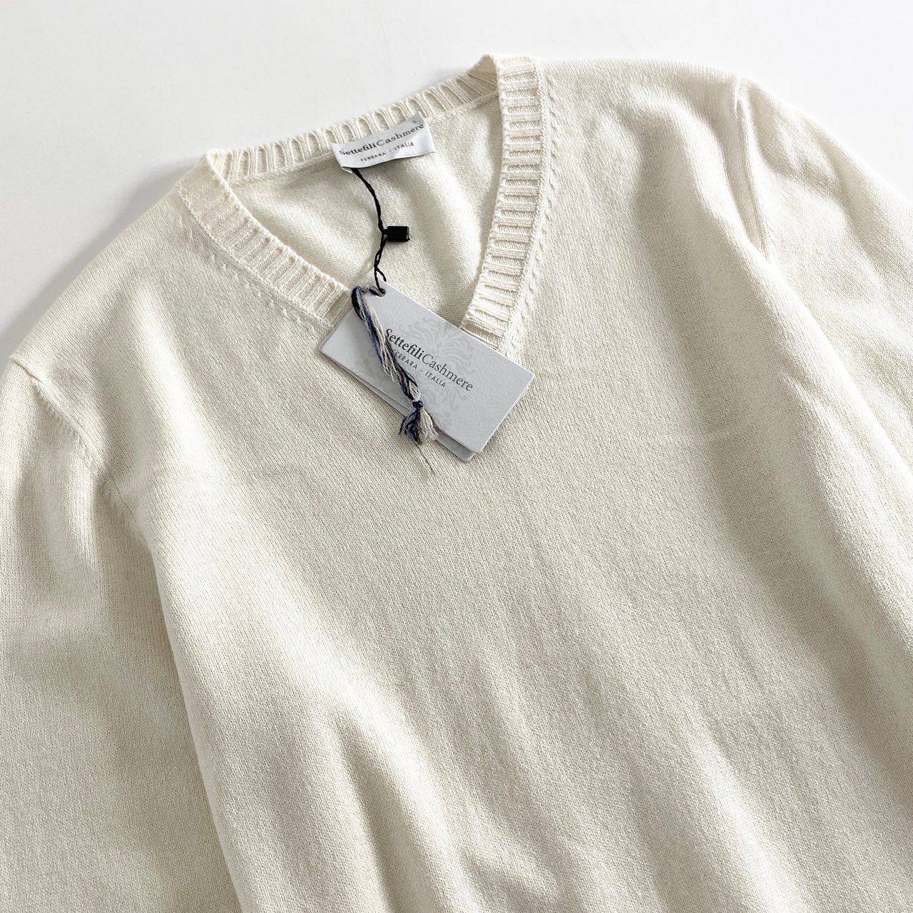 84h27 《未使用保管品》 イタリア製 Settefili Cashmere セッテフィーリカシミア Vネックニット セーターサイズ44 アイボリー カシミヤシルク メンズ 紳士服