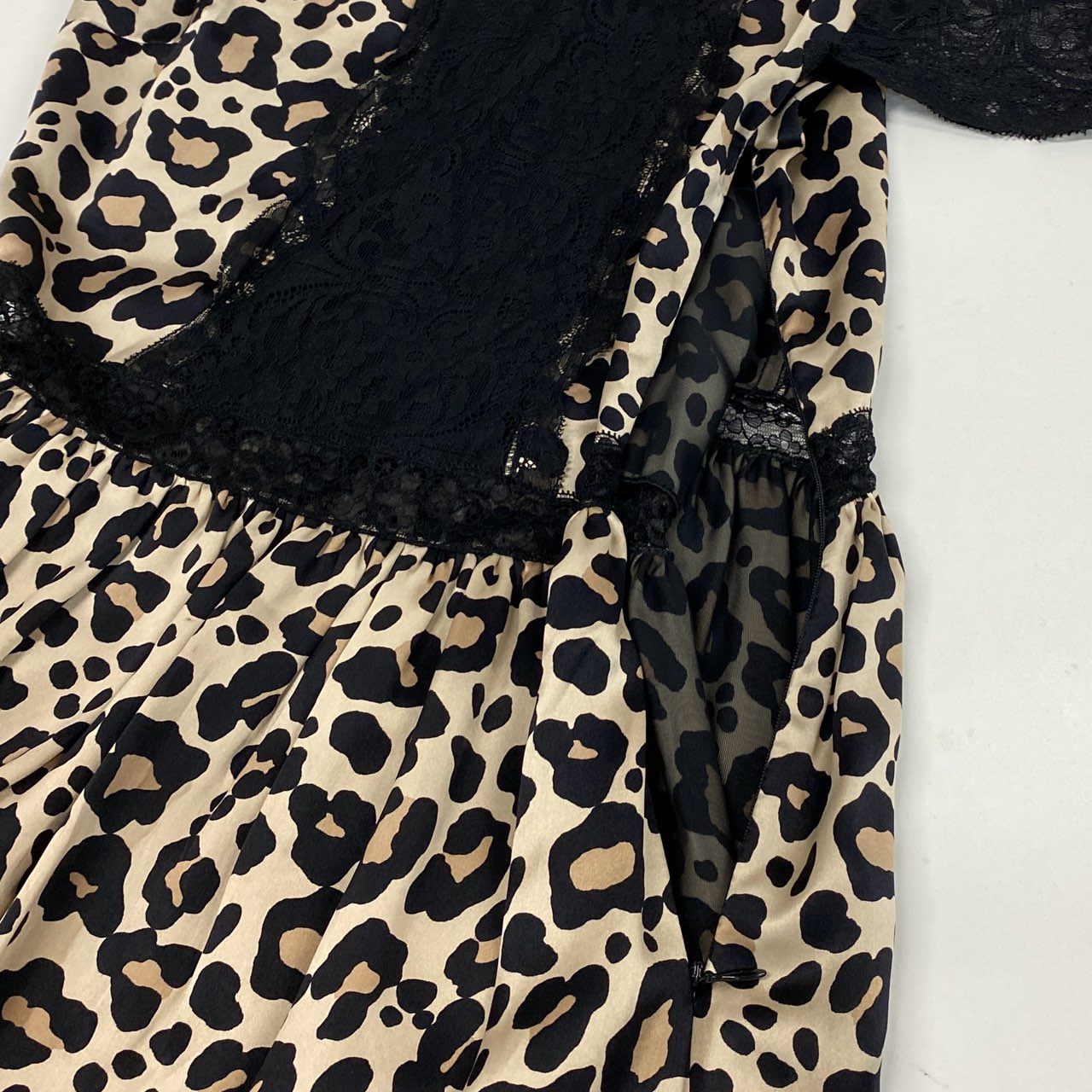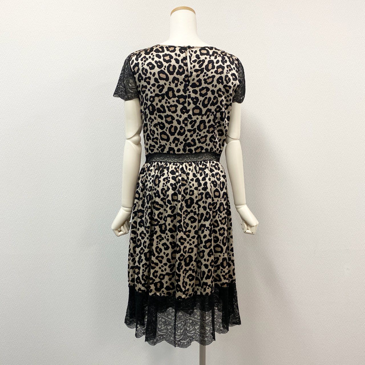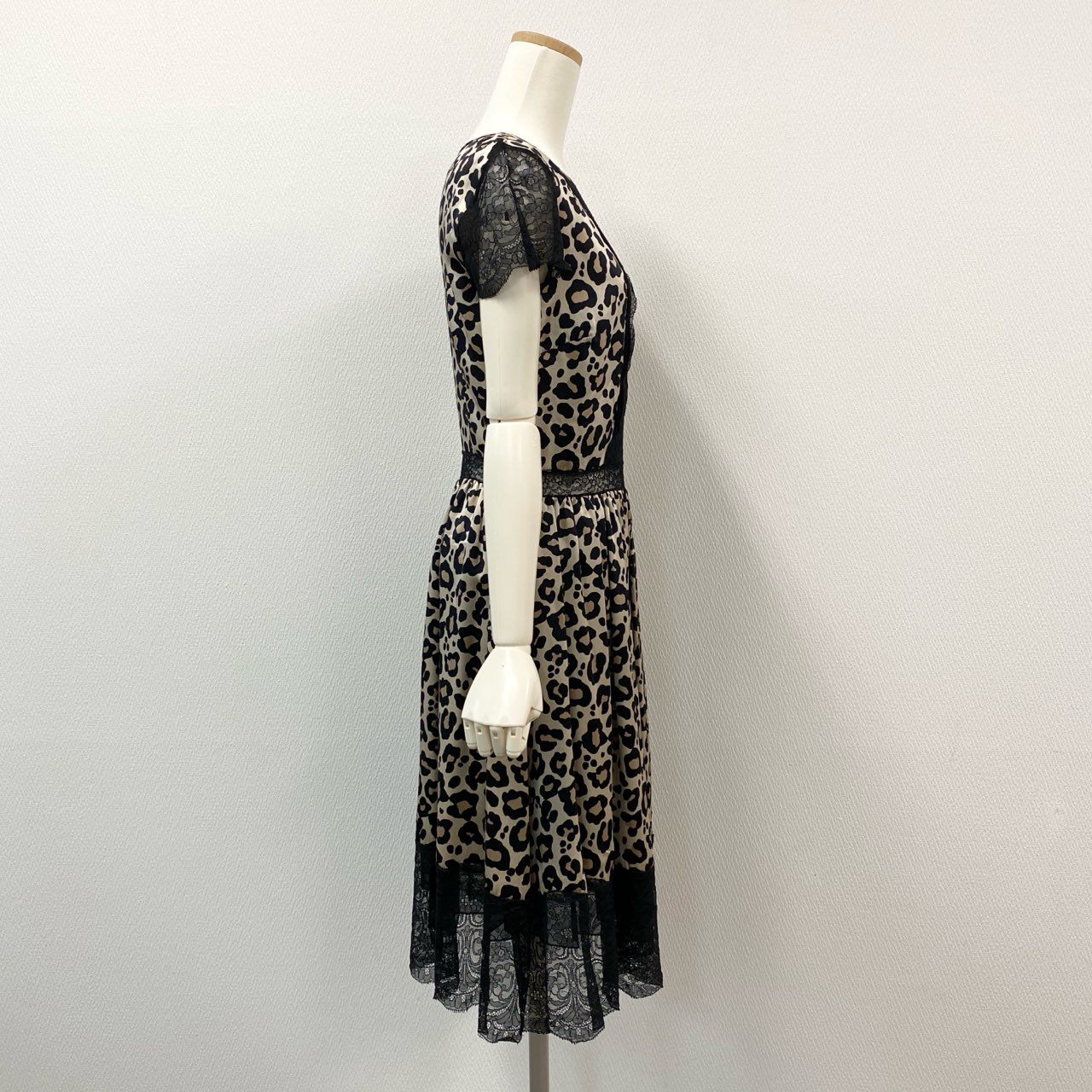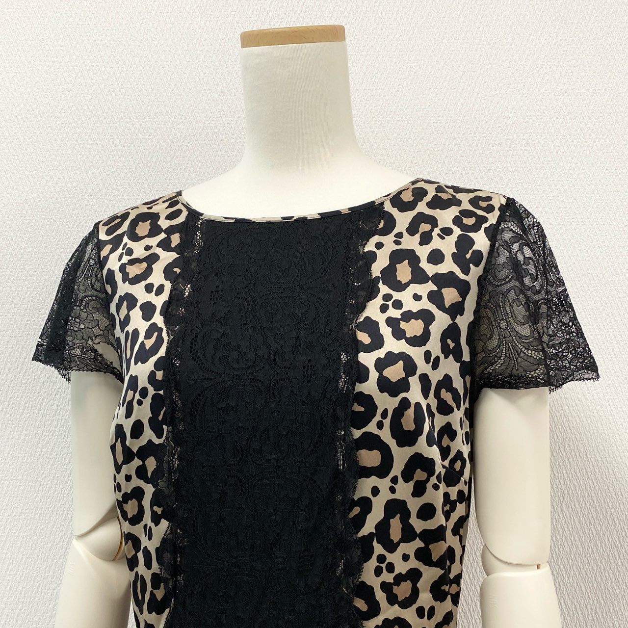 78i11 BLUGIRL BLUMARINE ブルーガール ブルマリン イタリア製 レオパード柄 レース切替 半袖ワンピース ドレス フレンチスリーブ 大きいサイズ 42 XLサイズ相当 ベージュ ブラック レディースk02i